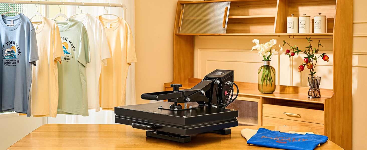Slide out the flat base by pulling the lower handle, and place your design on the item to be heat pressed.
