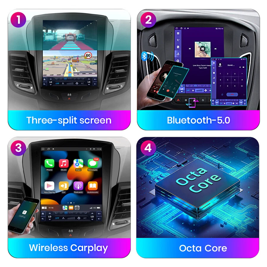 ●Wireless Carplay: You can choose wired connection or wireless connection to carplay, connect to Apple mobile phone, access mobile phone address book, mail, notification, map navigation, music, video and other information, and realize voice control.