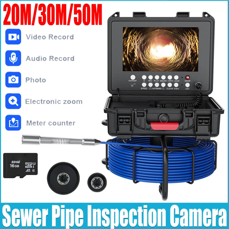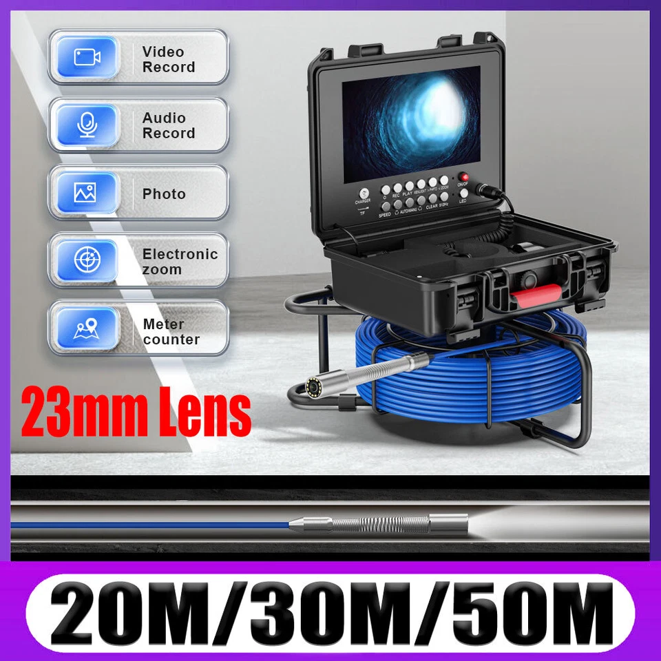 Professional Drain Pipe/Sewer Pipeline Inspection Camera is designed with a 9 inches color IPS LCD monitor with a sun-visor for outdoor inspections. The material of wire is fiberglass rod(diameter: 5MM),anti-corrosion/cold/tensile.