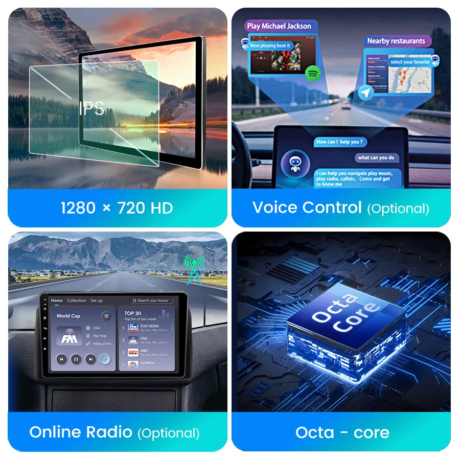 ●FM Radio: Online music you can transfer the music to the car stereo by FM to enjoy the original car stereo sound,with 18 preset stations