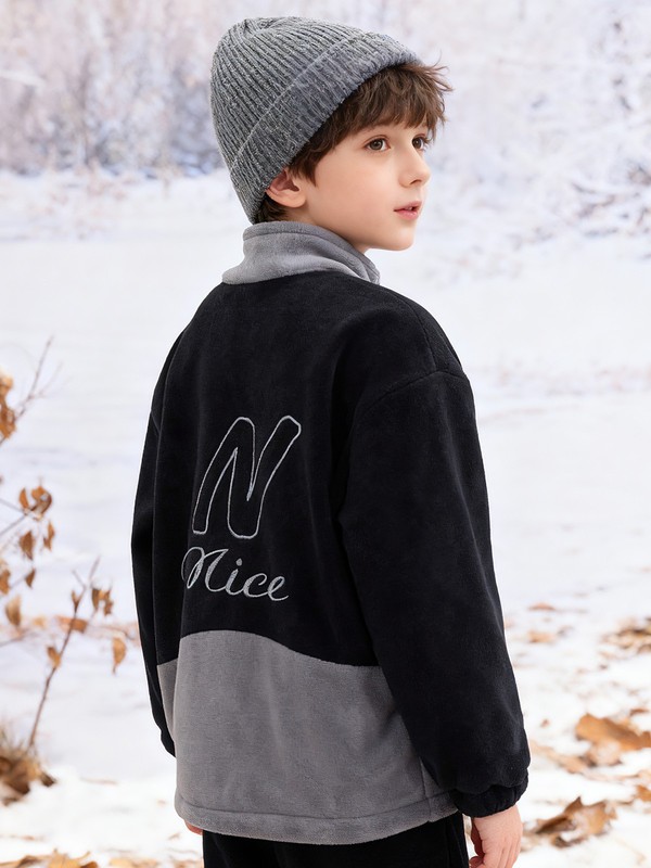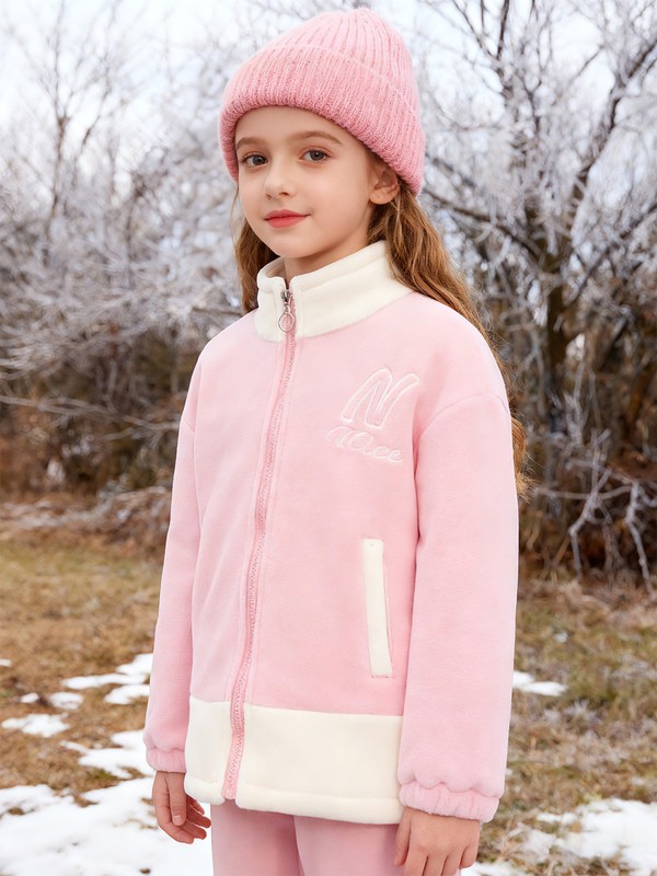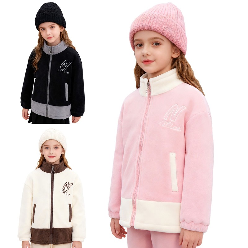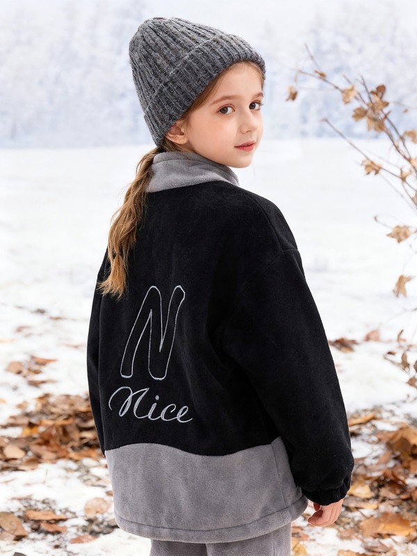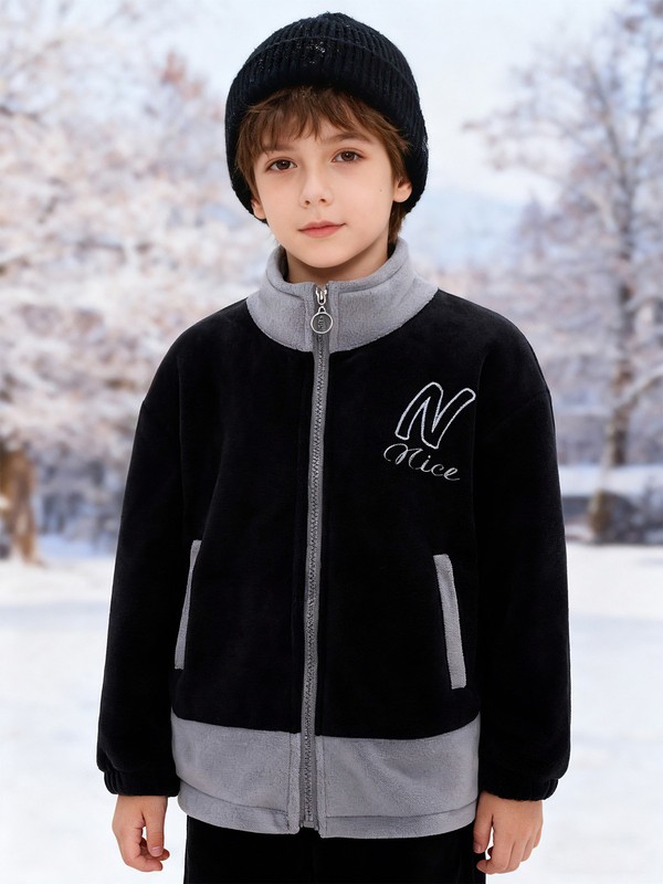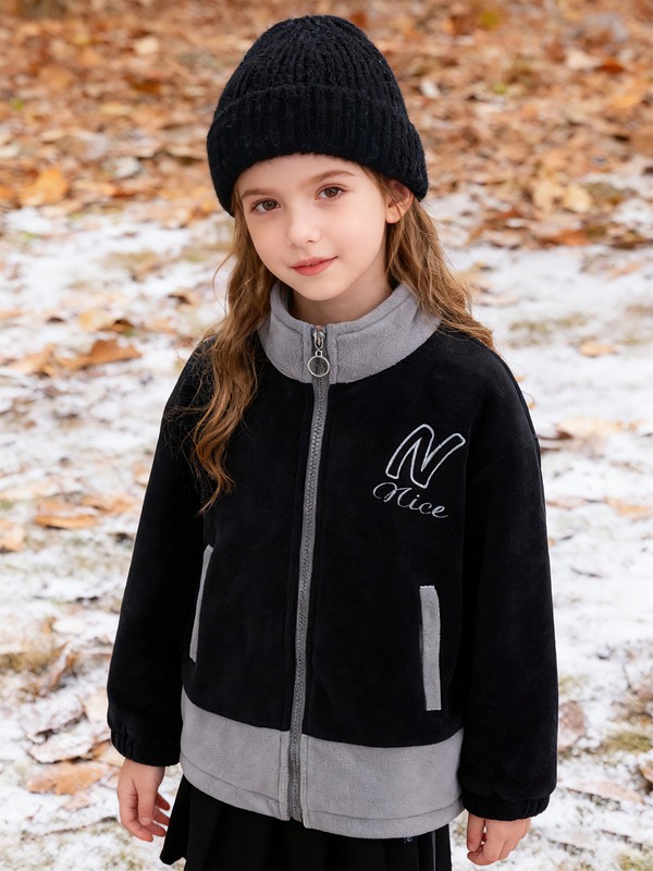 Set Include: 1Pc Kids Fleece JacketCondition: New with tagsMaterial: 95% Polyester, 5% SpandexFeatures:Made from a blend of polyester and spandex, it offers great elasticity and comfort, allowing kids to move freely during various activities.The letter embroidery design adds a trendy and personalized touch, making the jacket stand out and keeping up with the fashion trend.The stand-collar long-sleeve style not only provides warmth but also gives a stylish and cool look, making kids look fashionable.Equipped with zippers and pockets, the zipper makes it easy to put on and take off, and the pockets are practical for kids to store small items.Suitable for a wide range of occasions, such as casual daily wear, playing outdoors, family gatherings, holidays, birthday parties, and etc.