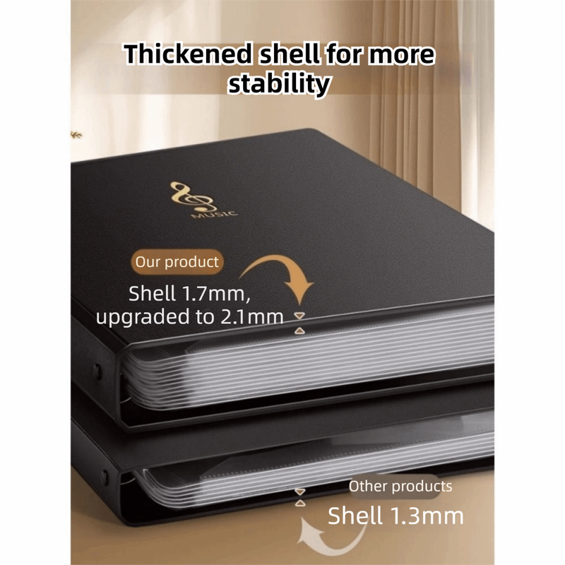 Name: Sheet Music Folder Color: Blue, White, Black Size: 32.8*27.8*3cm (12.91*10.94*1.18in), 31.5*23.5cm (12.40*9.25in) Material: PP Package includes: 1 Pc Sheet Music Folder (inner 20sheet/40pages)/40 sheets Replacement core Product sellpoints: 1.Protective Folder: Offers robust protection for your files, ensuring they remain pristine. 2.Durable Material: Crafted from high-grade PP, resistant to deformation for long-term use. 3.Versatile Use: Ideal for musicians, students, and office workers, perfect for various scenarios. 4.Stylish Design: Features a sleek black finish with music note patterns, adding a touch of elegance.