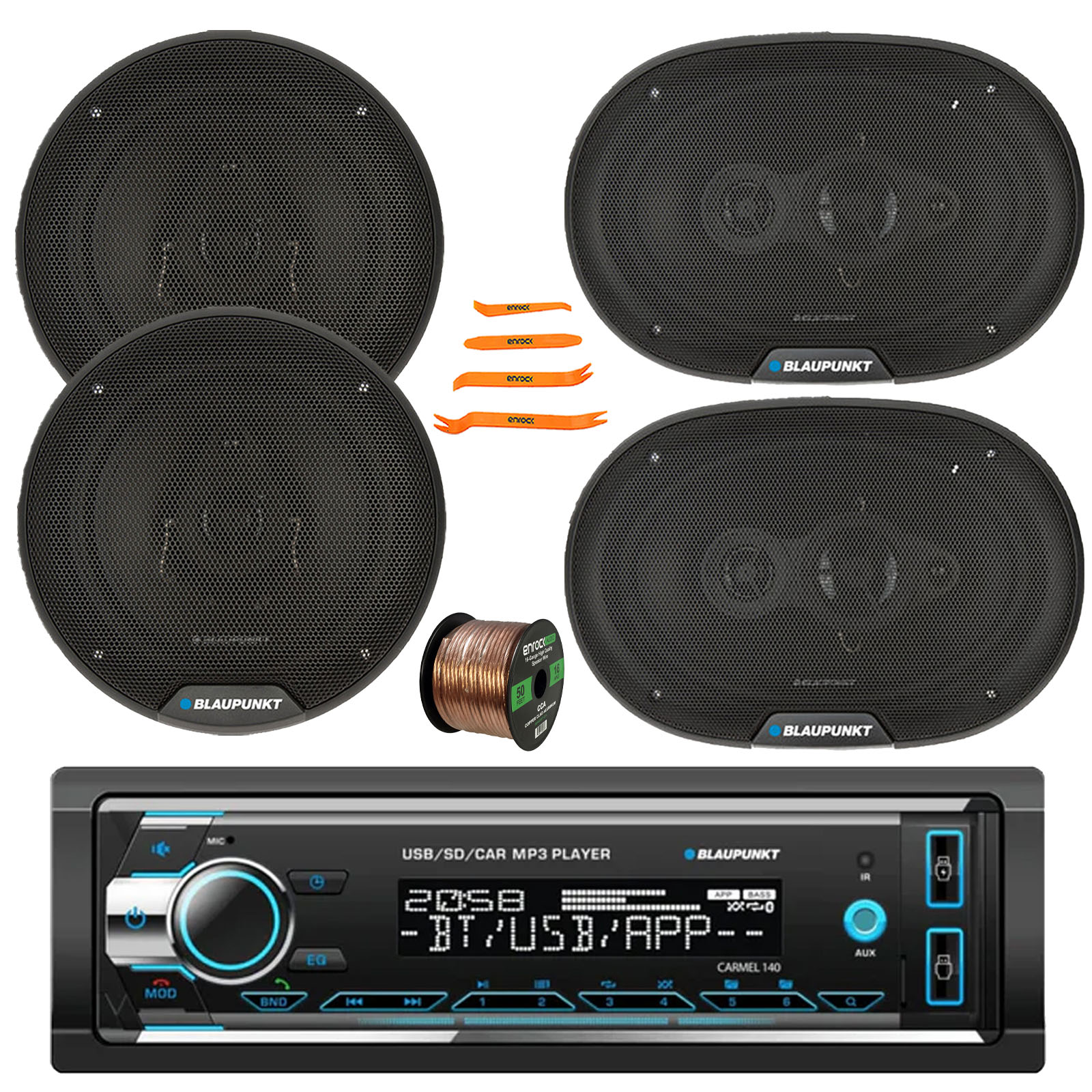 Blaupunkt Carmel140 Stereo Receiver, 2x 6" Speakers, 2x 6x9" 70W Speakers, Wire