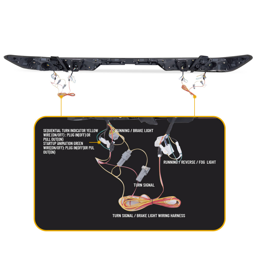 This item has the same connections and wires with the original tail lights. It is easy to installing (Professional installation recommended).