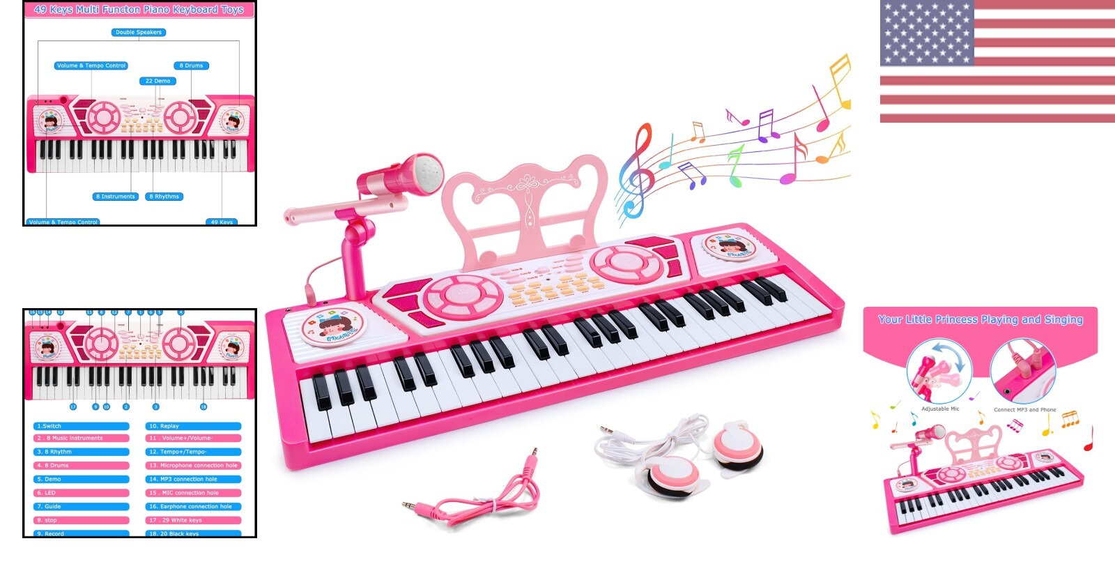 Versatile 49 Keys Child's Piano with Mic & Headphone