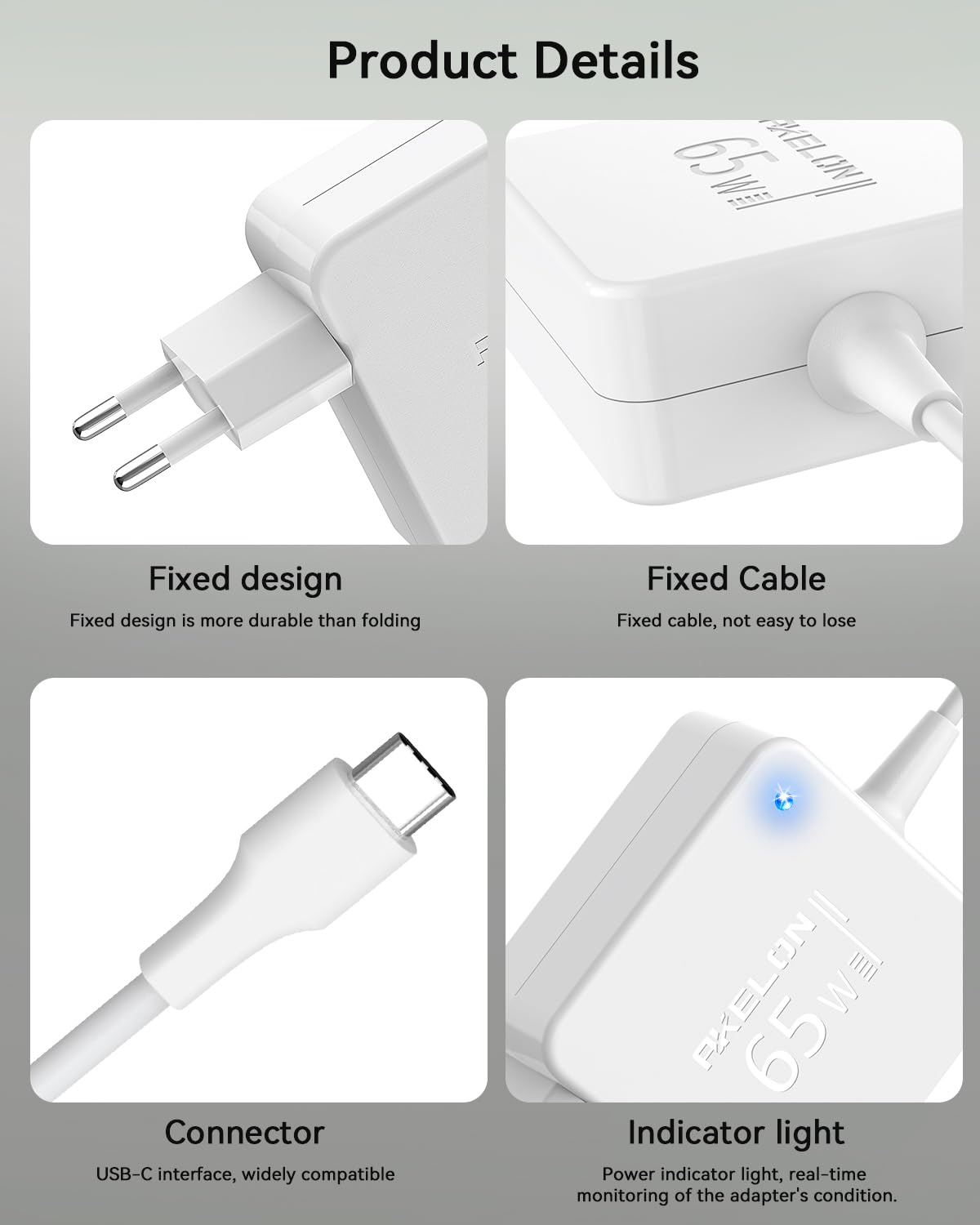 Imballaggio e servizio - Include 1* caricatore USB C 65W, 1* manuale di istruzioni. In qualità di produttore di adattatori di fiducia, manteniamo costantemente standard di qualità rigorosi per i nostri prodotti e li miglioriamo attivamente in base alle esperienze e ai suggerimenti dei nostri clienti.