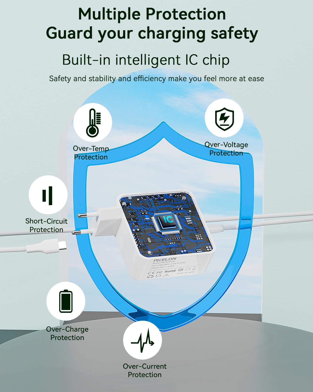 Sicurezza - Questo prodotto è dotato di un chip IC intelligente, che supporta diverse protezioni come la protezione da sovratensione, cortocircuito, sovracorrente, temperatura e sovraccarico, garantendo la sicurezza della ricarica.