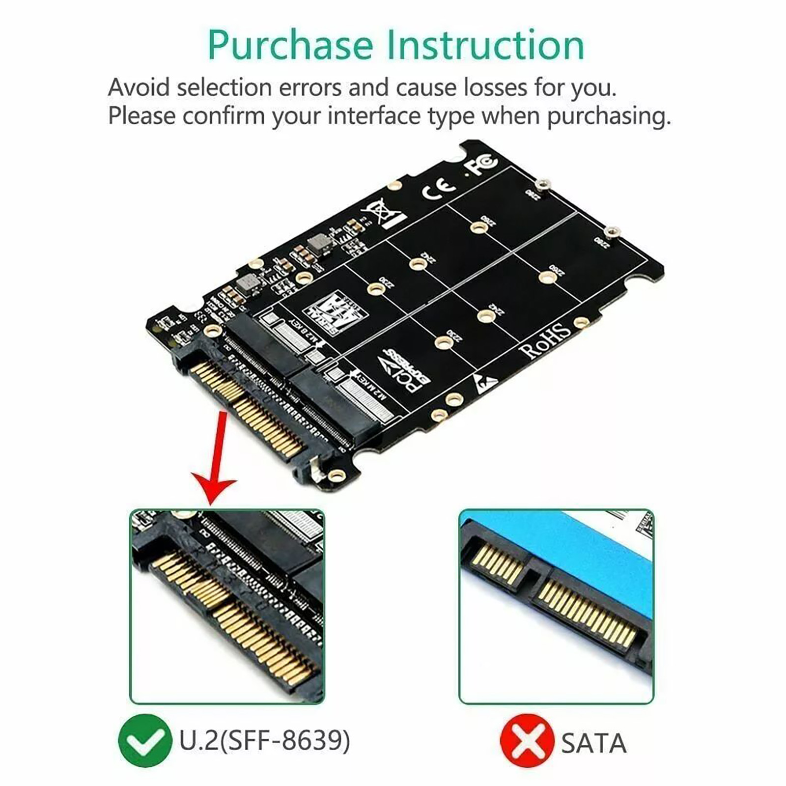 M.2 NVME SSD Key M + NGFF SATA SSD Key B to U.2 SFF-8639 Adapter