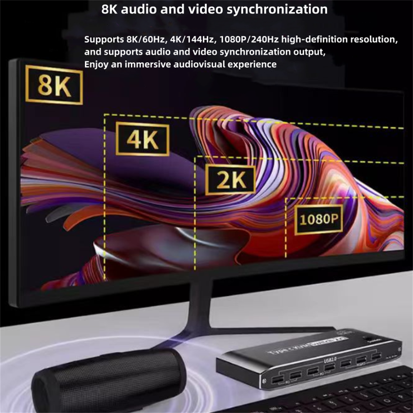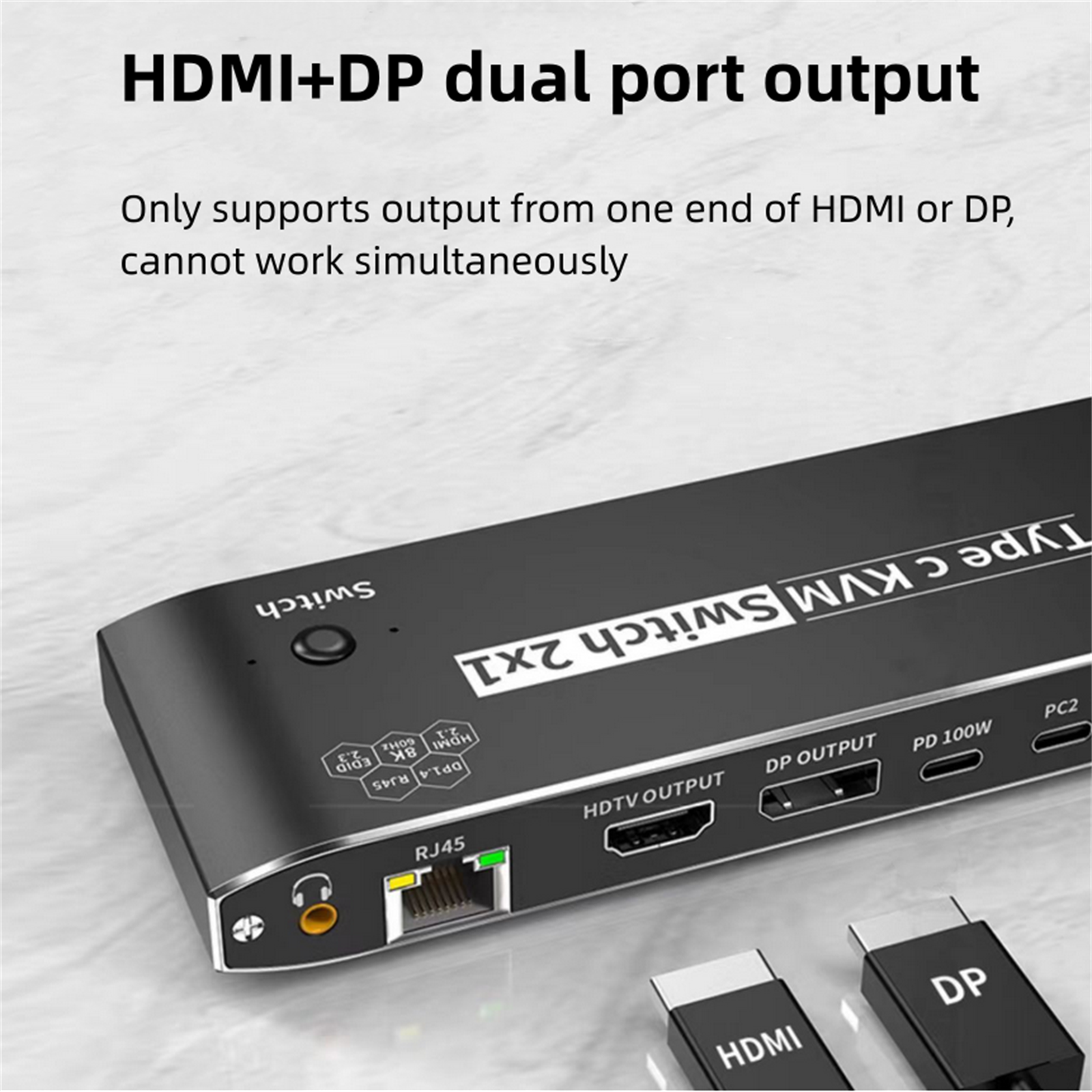 Bandwidth:HDMI 2.1: 48Gbps, DP 1.4: 32.4Gbps, USB 2.0: 480Mbps, RJ45: 100Mbps