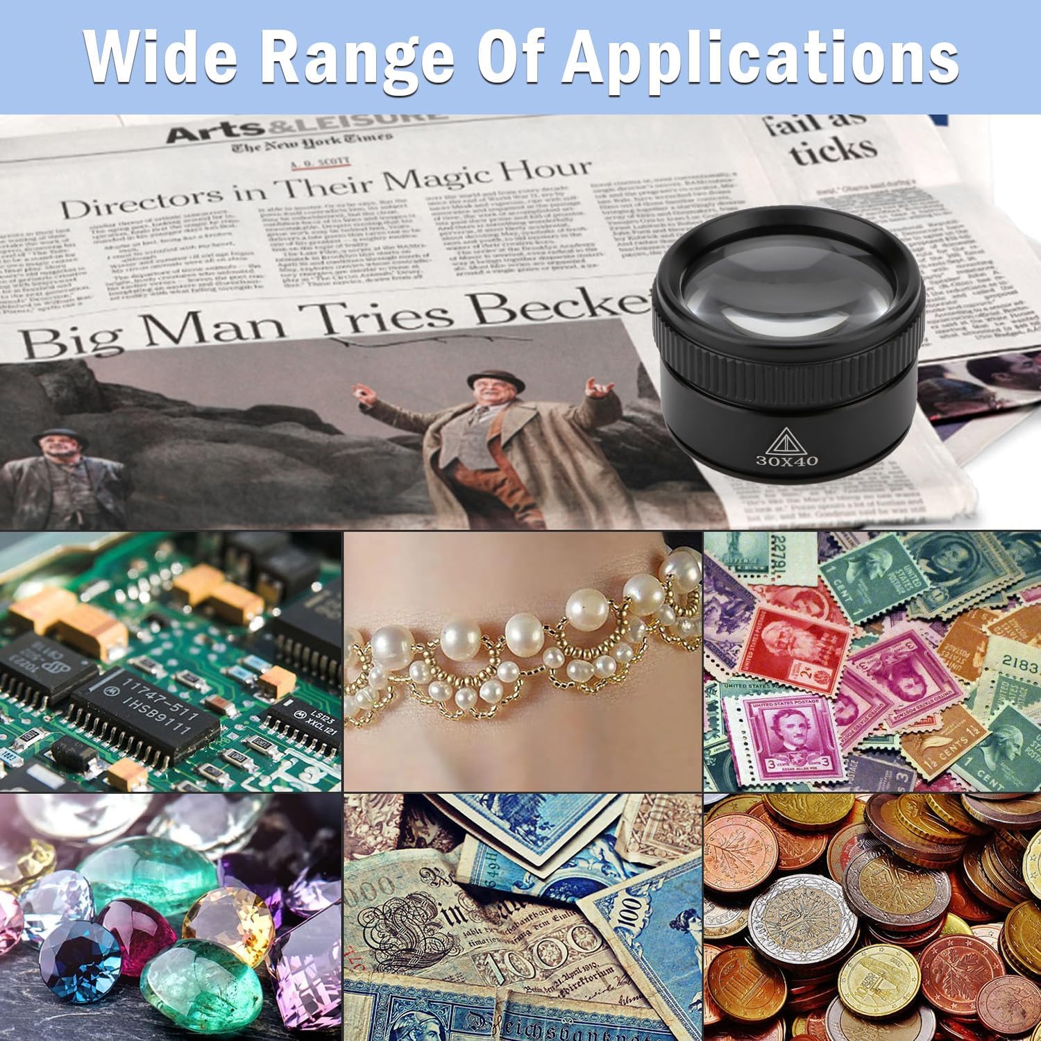 Multi-Scene Application: designed for jewelry, coins, stamps, models, precision repair and other fields, magnifying glass 30X is a philatelic enthusiasts to appreciate stamps, model enthusiasts to carve the details of the watchmaker to repair precision parts of the right-hand man, but also can be used in the daily reading of maps, newspapers and other scenarios
