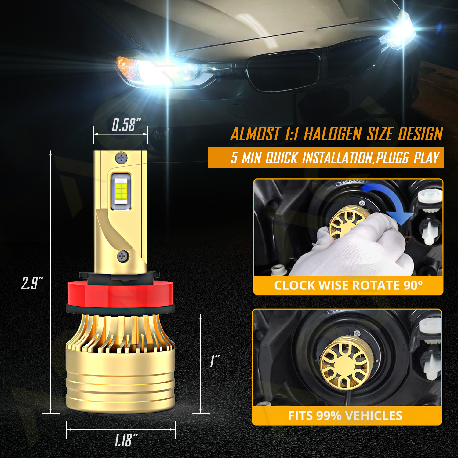 Compatible With: 9005/HB3/H10/9145/9140 & H11/H8/H9