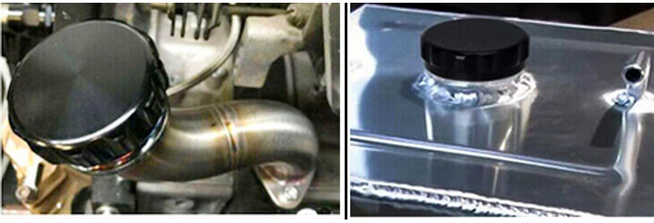 6) Coolant reservoir cap is a great way to give your engine a custom look.