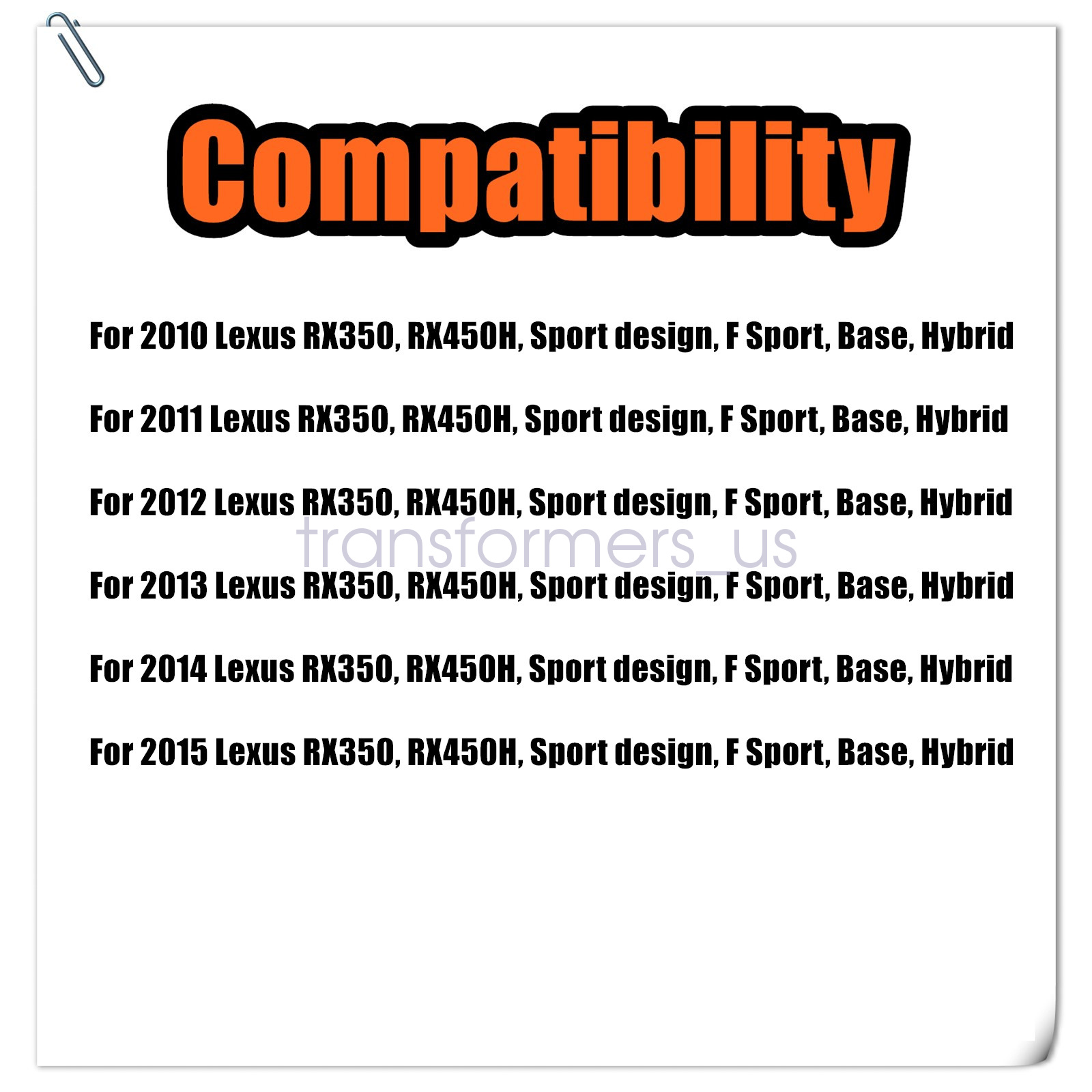 2010 Lexus RX350, RX450H, Sport design, F Sport, Base, Hybrid, Gas, 2WD, AWD.