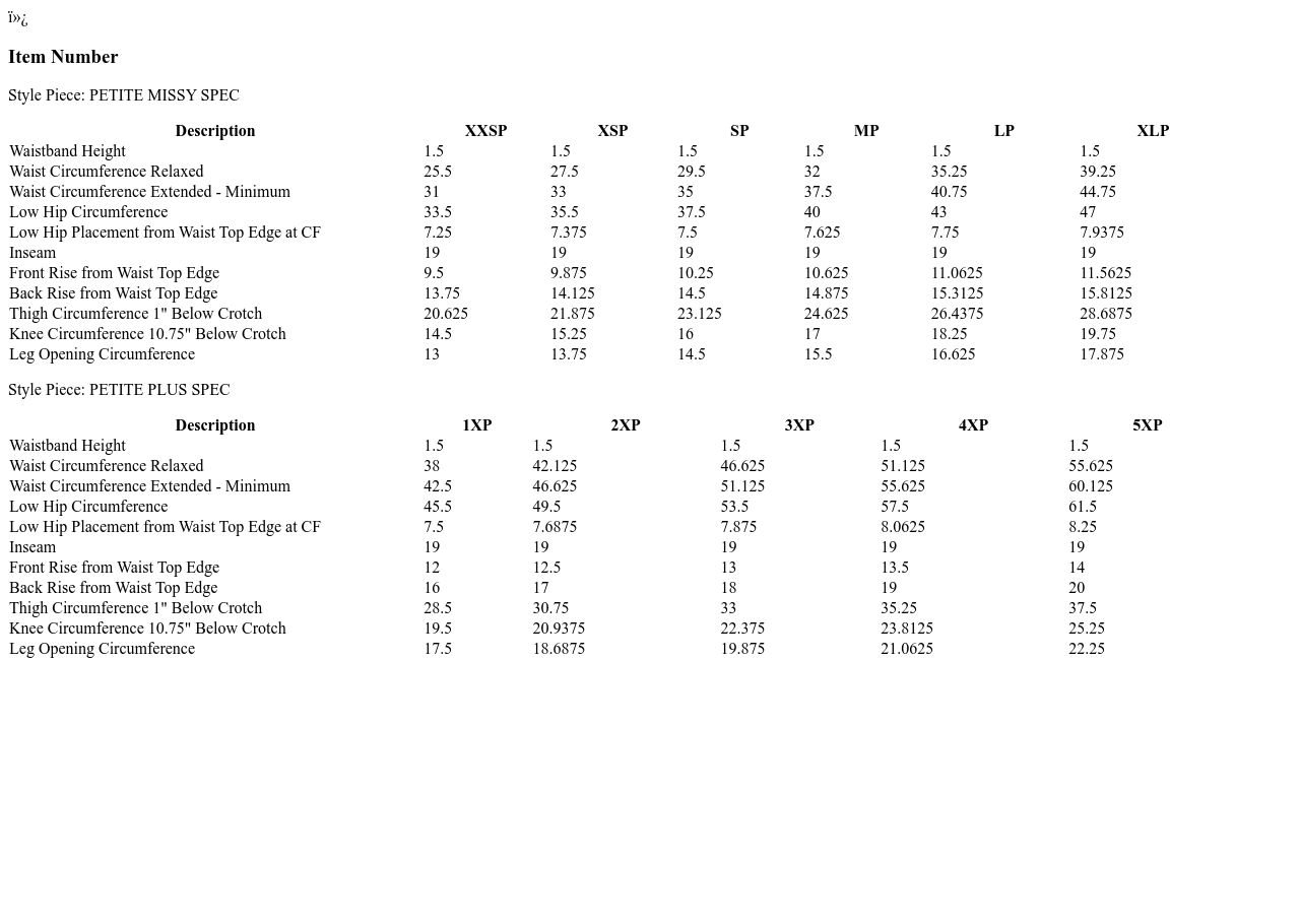 - Inseam: petite missy/plus inseam 19"
