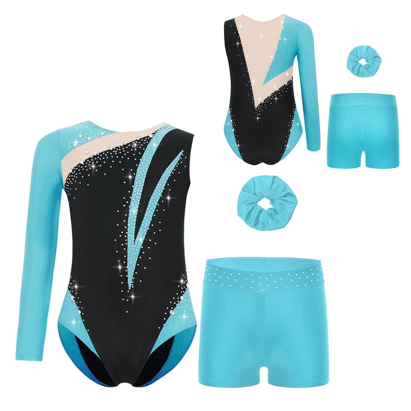 Made of polyester and spandex blend, stretchy and flexible, allowing for unrestricted movement during gymnastics, dance or figure skating.