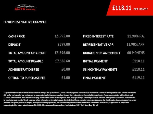 At Elite Vehicle Sales we don't just sell cars, we do everything possible to get you on the road with your perfect vehicle. Why not come along to our dealership in Bury? We look forward to meeting you!