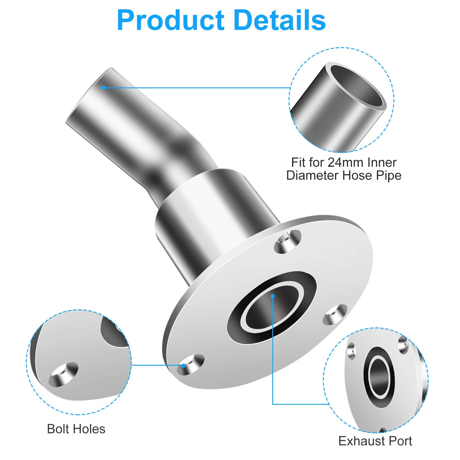 For Marine Applications 304 Stainless Steel Thru Hull Exhaust Fitting 24mm Bent
