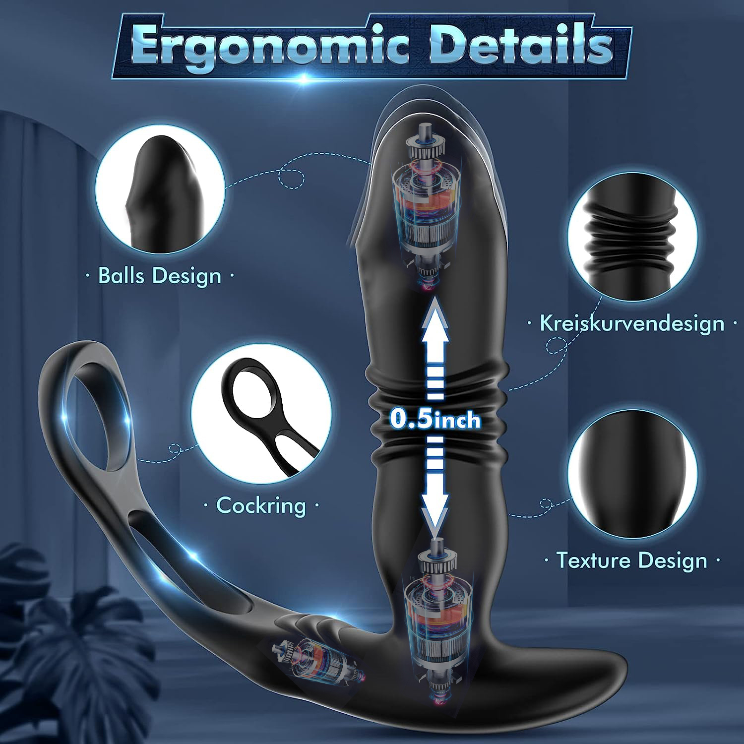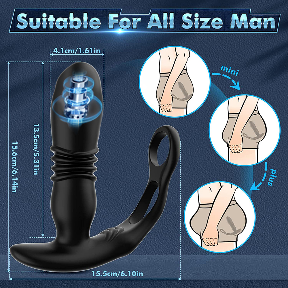 3 in 1 Handfrei Penisring-Vibrator - Der prostata stoßvibrator kombiniert Analplug, Prostata-Massagegerät und Doppel-Penisring in 1, das Analspielzeug hat eine perfekte Kombination aus verschiedenen Geschwindigkeiten und Arten von Vibration und Pulsieren. Der bewegliche Buttplug-Kopf fühlt sich an wie ein Finger, der die Prostata massiert und so für einen großen Prostata-Orgasmus sorgt. Und der Penisring Teil war dehnbar genug, um den Komfort zu garantieren, und erweitern Sie Ihre Freude Zeit.