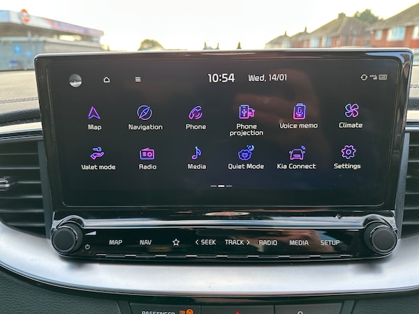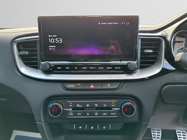 ..10.25'' touchscreen satellite navigation, 4.2'' supervision colour cluster display, Apple car play/Android Auto with voice control, Bluetooth with Voice Recognition & Music Streaming, Cruise control + speed limiter, Driver attention warning + (DAW) with leading vehicle departure warning, Emergency call service, Emergency stop signalling system, Forward Collision-Avoidance Assist (FCA) - City/Pedestrian/Cyclist, Kia connect UVO, Lane Following Assist (LFA), Lane keep assist, Manual speed limit assist, Motor driven power steering, Rear parking sensor, Reversing camera system with dynamic guidelines (Integrated into centre fascia screen), Trip computer, Intelligent Stop and Go, 6 speaker audio system, DAB Radio with MP3, Illuminated USB ports, Steering wheel mounted controls, USB Fast Charger in Front Centre Console, USB type A port, All-round Electric Windows with Front Auto Up & Down Function, Auto dimming rear view mirror, Automatic defog system, Automatic headlights control, Body colour bumpers, Body colour exterior door handles, Body coloured and dark chrome rear skid plate, Body coloured side sill mouldings, Dark chrome window surround, Electric adjustable/heated/folding door mirrors with LED Indicators, Heated rear window with timer, High beam assist, High gloss black and dark chrome radiator grille, High gloss black door mirrors, High Gloss Black rear spoiler - roof, LED daytime running lights, LED front fog lights, LED Headlights, LED High-mounted Brake Light, LED honeycomb rear light, LED rear combination lights, LED rear fog light, Privacy glass (rear side windows and tailgate), Rain sensing front wipers, Rear side wing doors, Rear wash/wipe, Satin chrome dual exhaust trim, Tinted glass, Wide view drivers door mirror, Windscreen Washer Level Warning, 1 x Front 12V socket, 12V power socket in luggage compartment, 3 seat bench in 2nd row, 3 x passenger assist grips, 60/40 split folding rear seat, All-round height adjustable headrests, Aluminium pedals, Black headlining, Centre console storage box/armrest, Cloth/faux leather upholstery, Cupholders in centre console, Cupholders in rear armrest, Dash illumination dimmer switch, Door courtesy lamps, Driver & Front Passenger Sunvisors with Vanity Mirror Illumination & Ticket Holder, Driver + front passenger electric lumbar support, Driver's seat height adjuster, Dual Height Luggage Area Floor, Dual zone automatic air conditioning, Faux leather door centre trim, Front and rear door storage, Front cabin