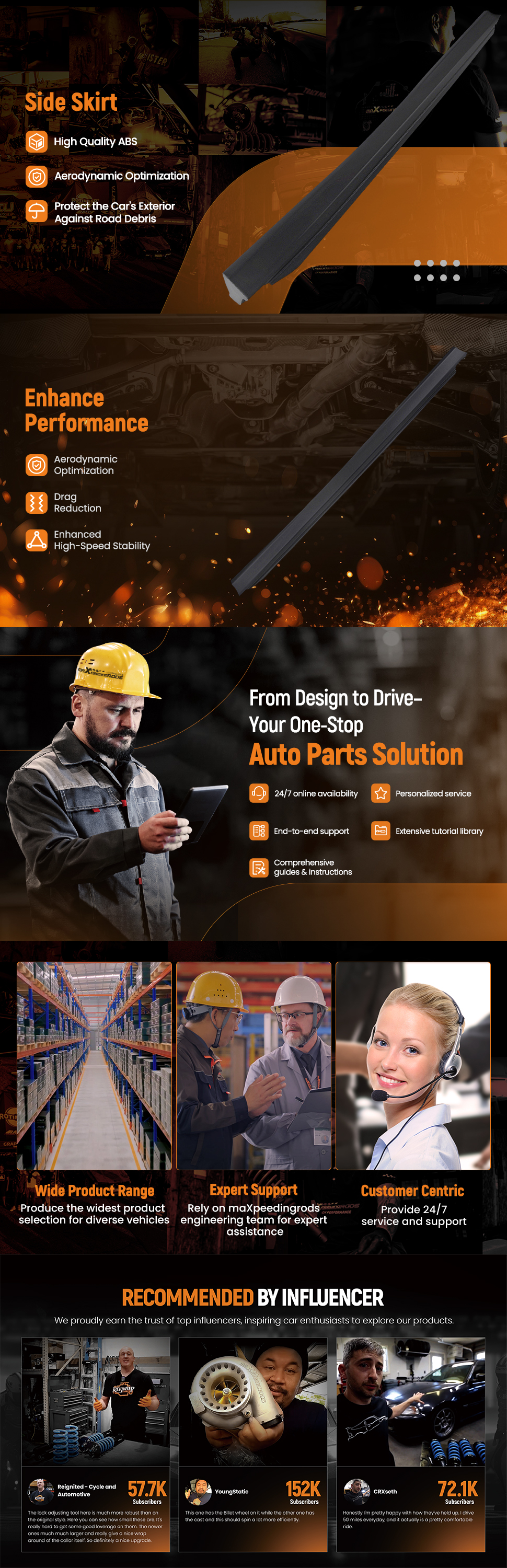 Streamline airflow along the sides of the vehicle, reducing drag and improving stability at high speeds. This enhances fuel efficiency and overall vehicle performance.
