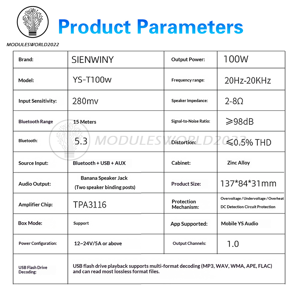 2. Built-in TPA3116 high-end amplifier chip, compatible with 2-8Ω full impedance, effortlessly driving home theater-grade audio systems.