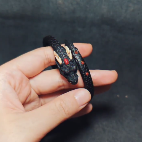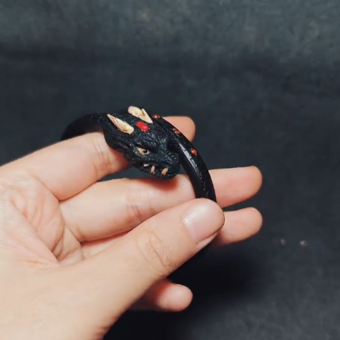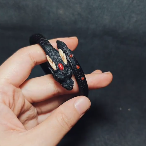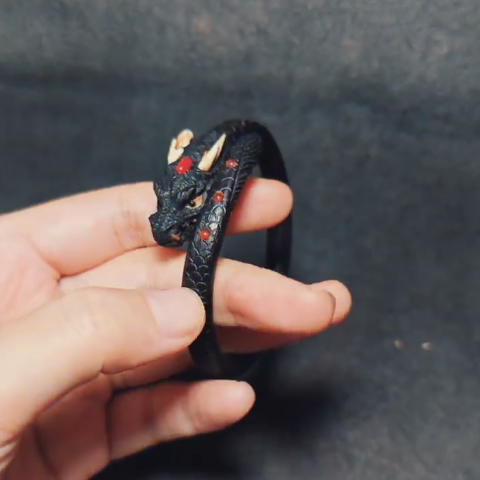 Black Dragon Open Bangle Bracelet Chinese Zodiac Vintage Style Jewelry Unisex
