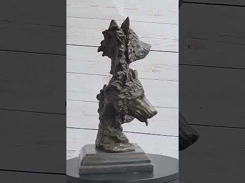 Created using the finest bronze, "Wild Pack" embodies the raw power and elegance of a wolf pack. The sculpture is adorned with a unique patina finish, achieved through the application of special chemicals that create a mesmerizing blend of natural and metallic hues. The shifting colors add depth and dimension to the piece, capturing the dynamic spirit of the wild. Resting proudly on a sleek black marble base, this sculpture is a testament to the artist's craftsmanship and the enduring beauty of nature.