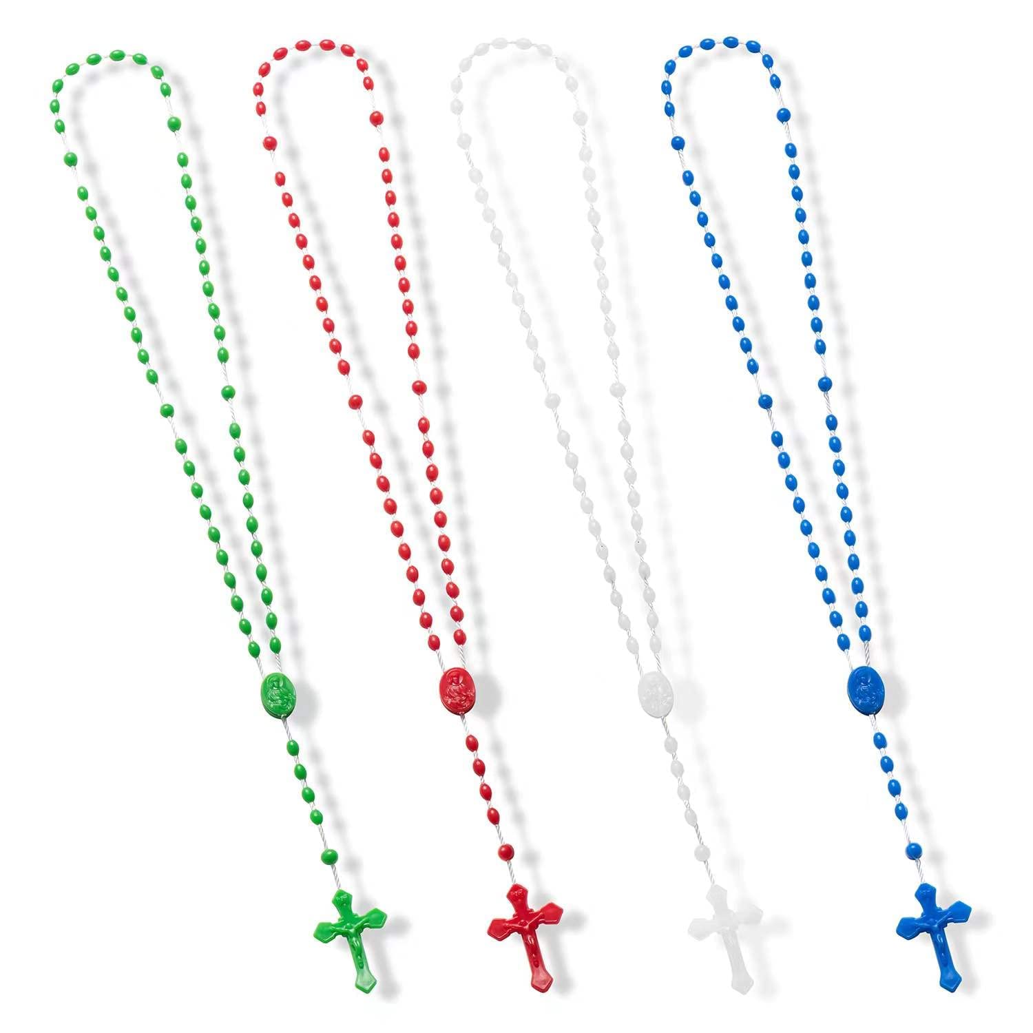 - Color: Plastic rosary are four different colors, blue, red, green and glow in the dark, Three strips of each color