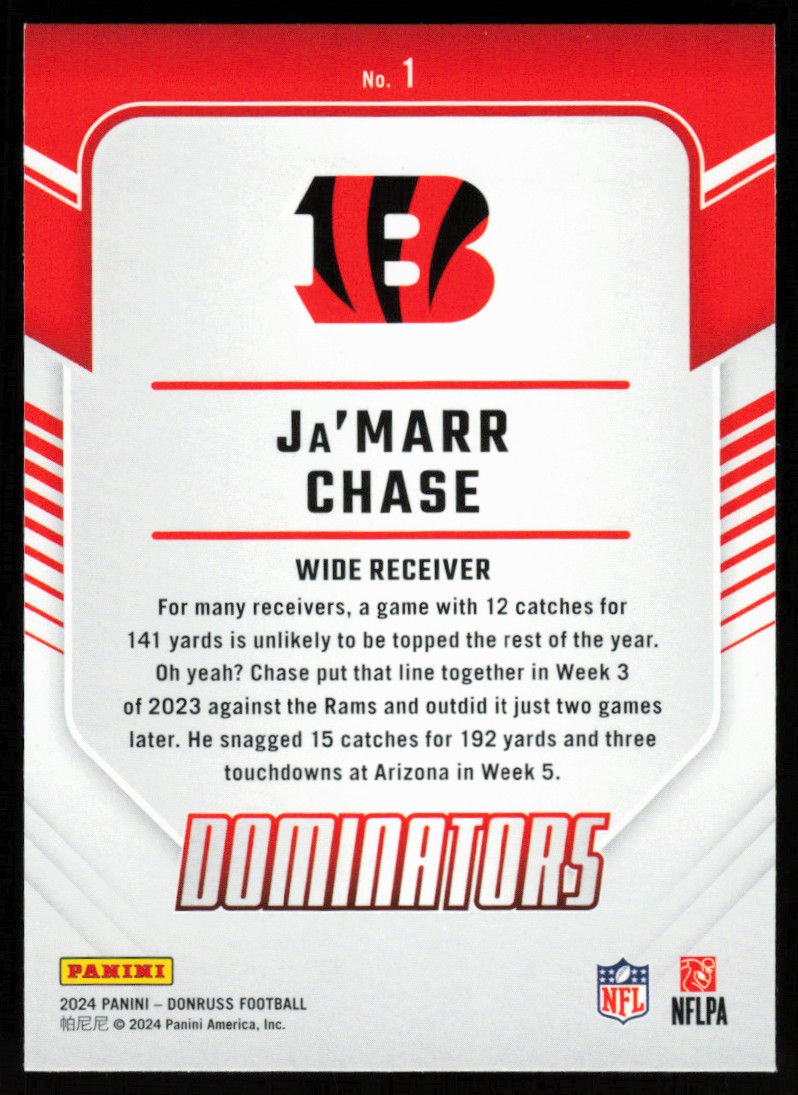 2024 Donruss Dominators Ja'Marr Chase Cincinnati Bengals #1