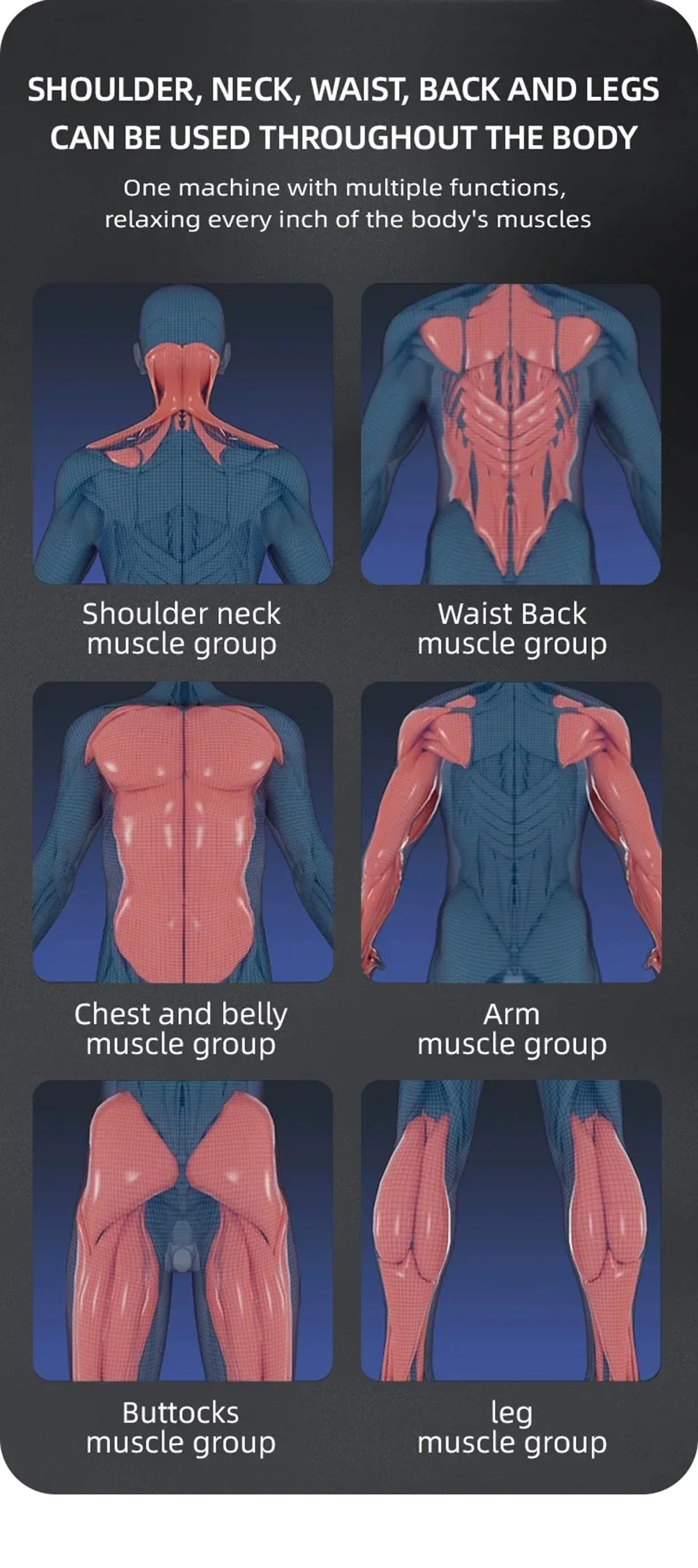 Functions: Vibration massage; Relieve fatigue; Conditioning health