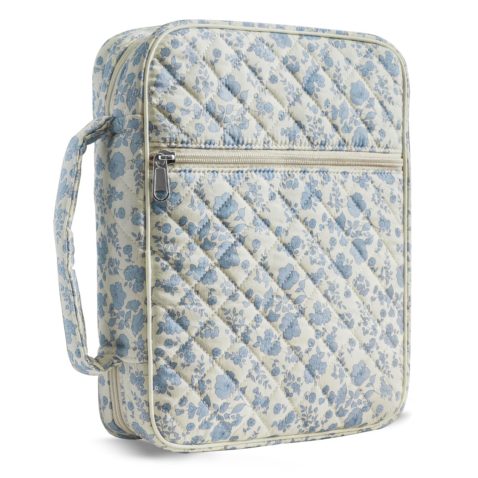 Bible Cover Case for Women,Large Bible Tote Bags Organizer Quilted Carrying Case for Girls,Bible Study Supplies Accessories Christian Gifts for Women (Blue Floral, M)