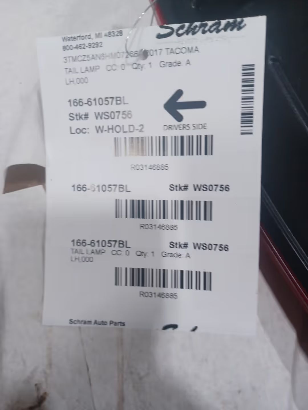 Inner or Outer, Upper or Lower. Confirm before purchase to avoid delays or returns. Genuine OEM Quality: This is a factory-original part manufactured to precise specifications for fit and performance. Units may show normal signs of use such as surface scratches or light scuffs but are thoroughly inspected to ensure lens integrity and proper function. See listing notes for grading and cosmetic condition. Fitment Confidence: Use part numbers, images, and interchange information to verify this is the correct taillight for your application. Still unsure? Send us your VIN—our team can help confirm fitment. Questions? Ask for Chad. Our expert parts staff is ready to help you find the right lighting solution the first time. Call or message us—we’re here to ensure your satisfaction. Drive Safe, Stay Seen: A cracked or dim taillight isn’t just unsightly—it’s unsafe. Replace it today with a dependable OEM unit from Schram Auto and Truck Parts. Trusted since 1923 for quality and integrity in automotive recycling.