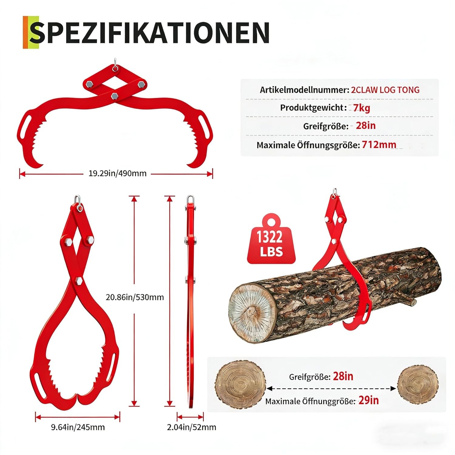 Easy to Use: Tongs open up to 28 inch wide to fit a variety of logs and poles,The timber claw hook is perfect for use with tractors, buggies, ATVs, trucks, forklifts and other types of vehicles. Say goodbye to manual labor and transport logs easily and efficiently with your vehicle, make stacking and transporting logs safer and more efficient