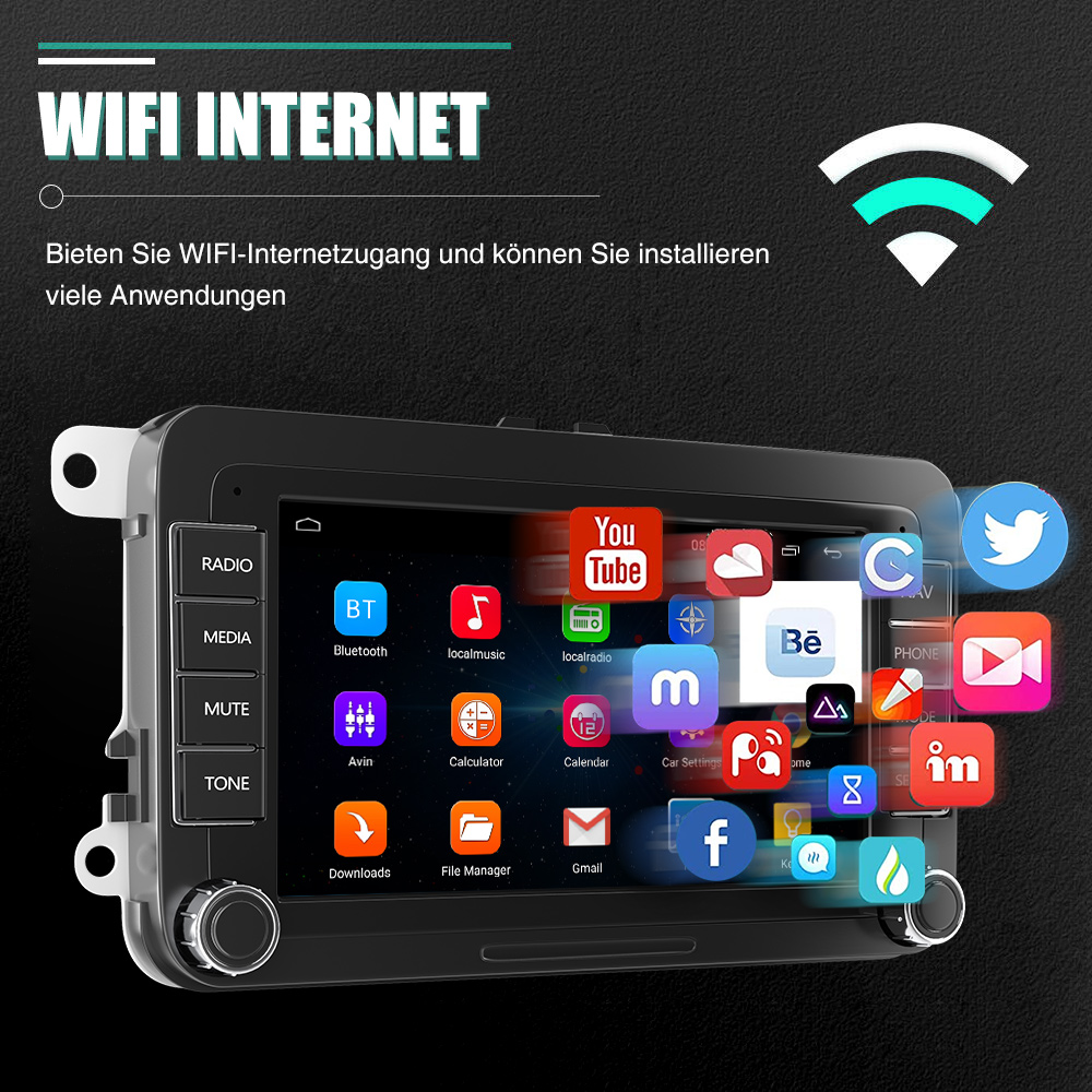 7 Zoll Android Autoradio Für VW GOLF: Dieses Bluetooth Autoradio ist geeignet für VW/PASSAT/GOLF/SEAT/SKODA/POLO. Das Android Autoradio mit kapazitivem 7 Zoll IPS Touchscreen, 1 GB RAM und 16 GB ROM bietet Ihnen genug Platz zum Download Ihrer Lieblings-Apps und -Videos, damit das Autofahren nicht mehr langweilig wird. Mit zwei USB-Anschlüssen unterstützt es das schnelle Aufladen von Mobiltelefonen.