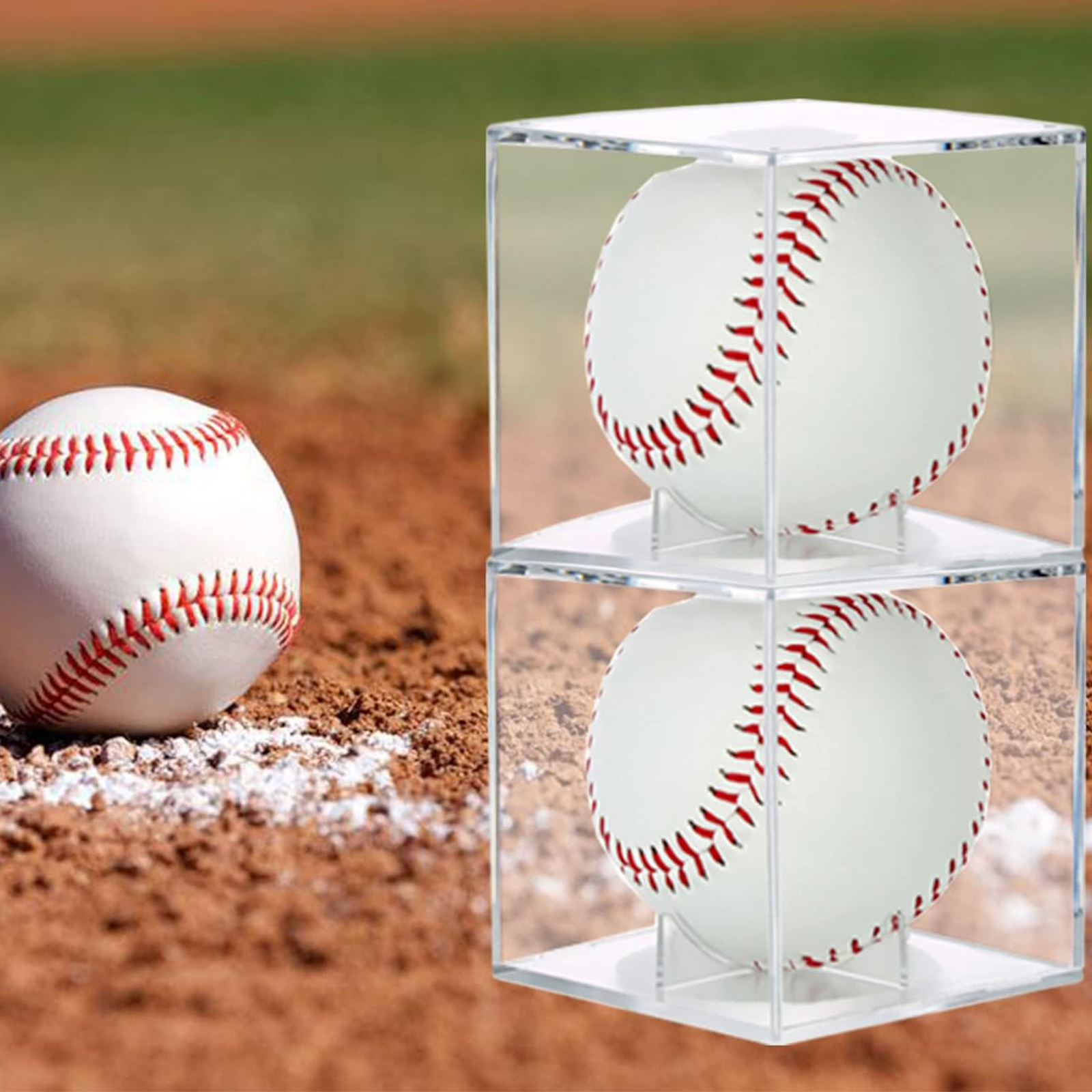 [SPECIFICATION AND SIZE] the size is 3.15" × 3.15" × 3.15" (8cm × 8cm × 8cm). Please note: does not contain baseball. The baseball display case is suitable for official size baseballs to protect you Beloved baseball. The display box is easy to disassemble and is divided into upper and lower parts; push up and pull to open. The precise groove design makes the baseball case perfect connection.