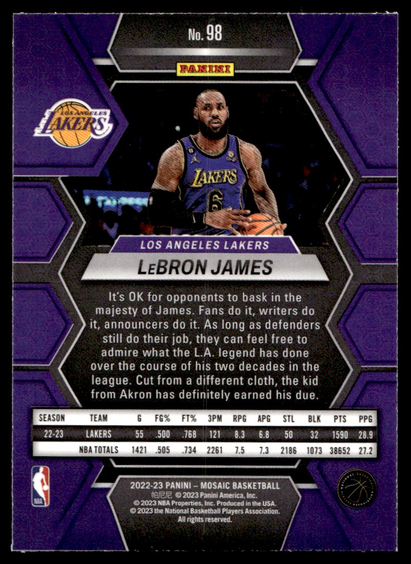 | 2022-23 Panini Mosaic LeBron James Los Angeles Lakers #98 |