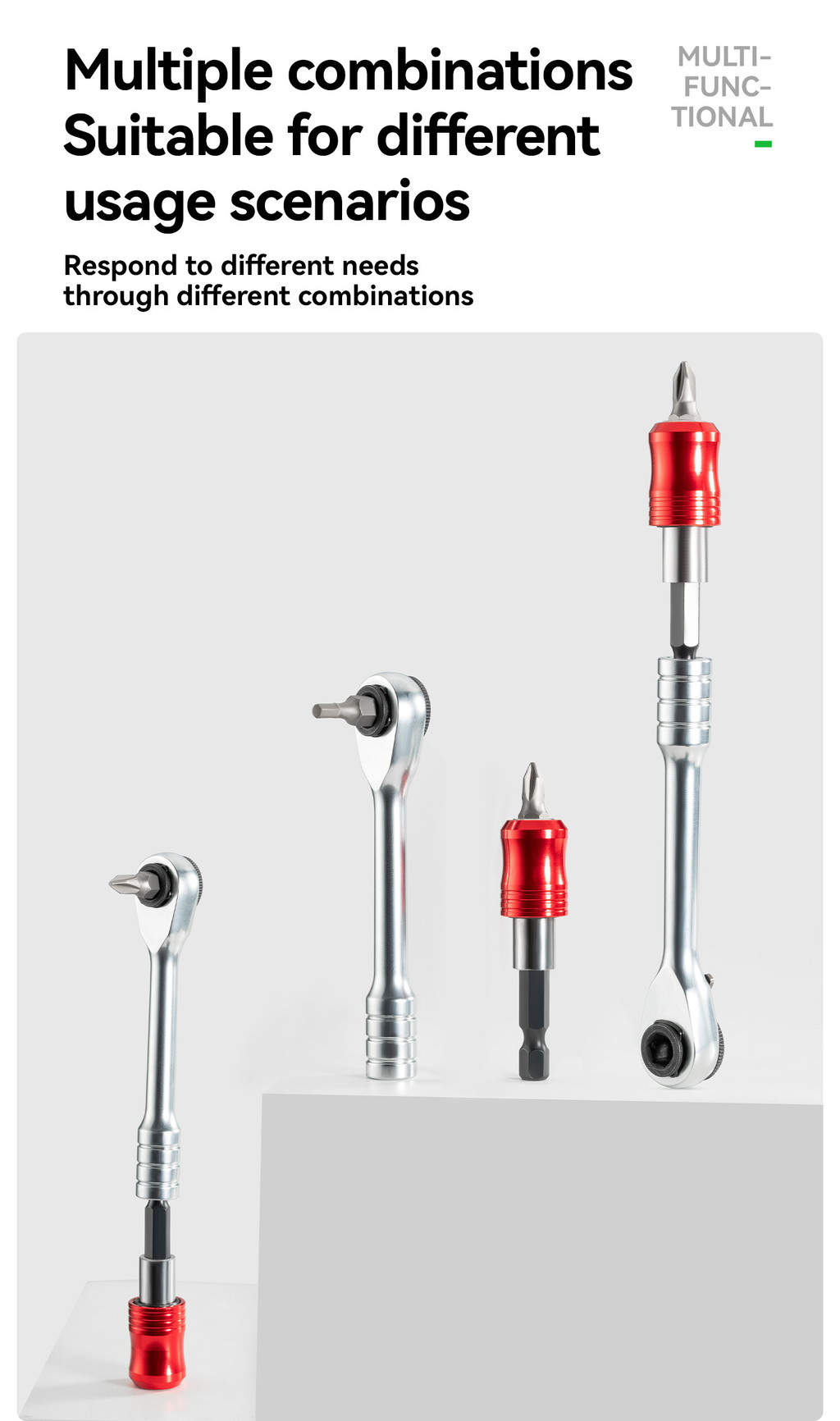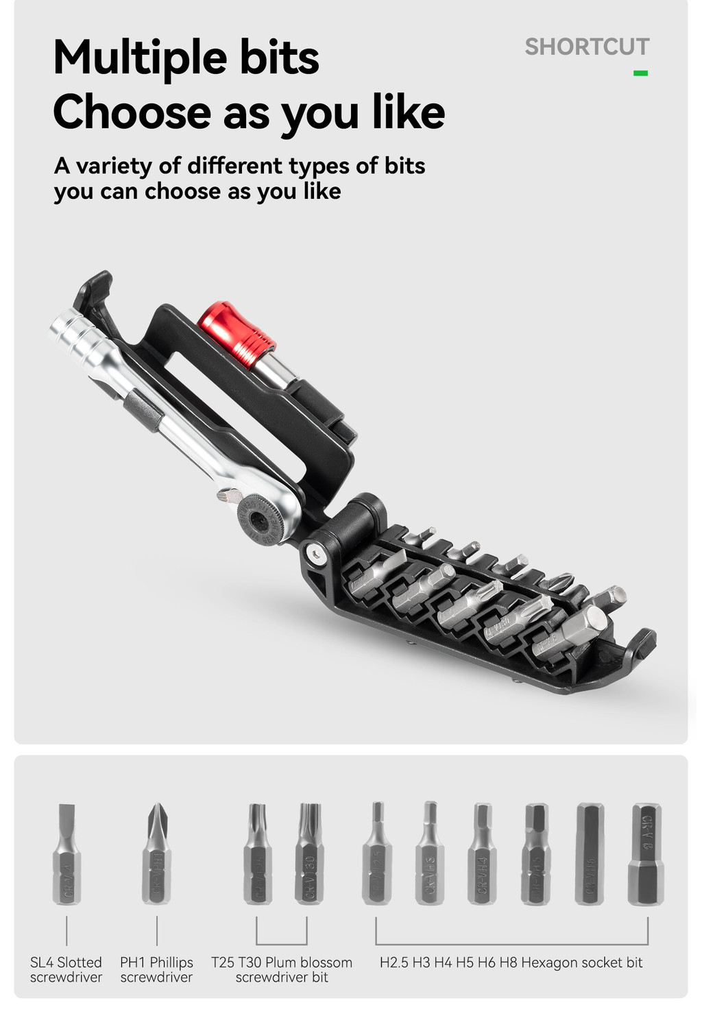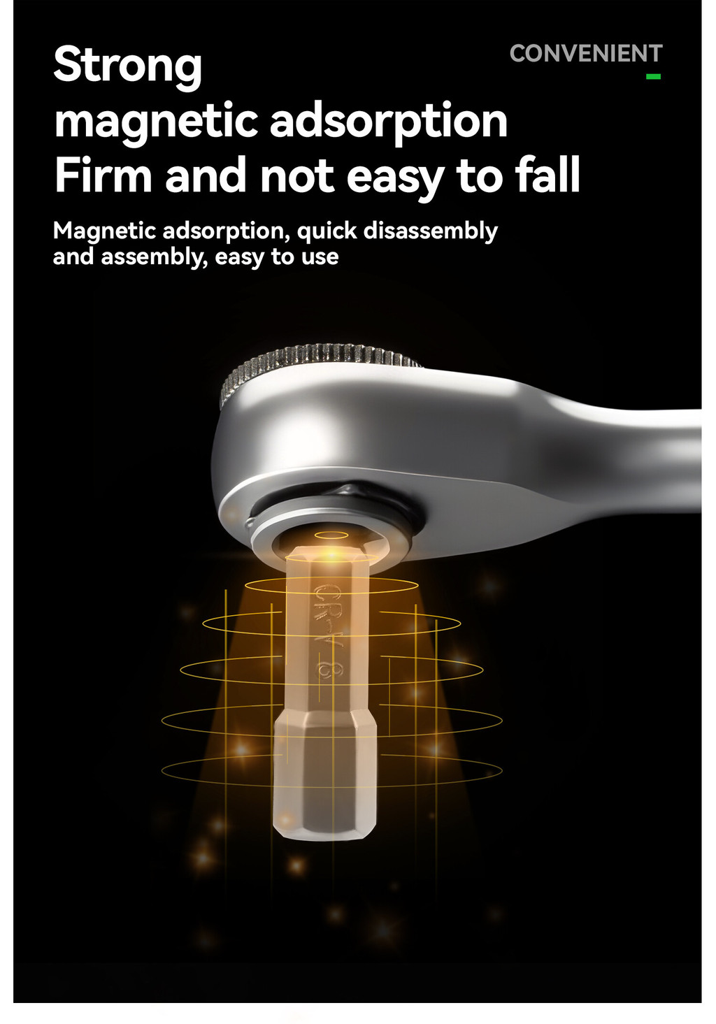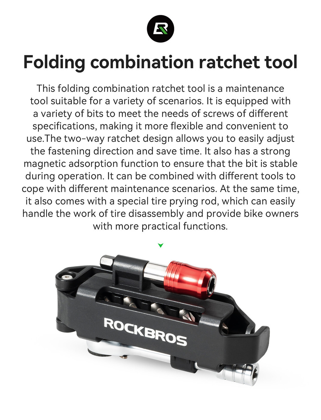Features: Two-way ratchet: adjust the fastening direction according to demand, convenient and fast Stable: built-in magnet and groove fixed, firm and anti-detachment Multifunctional: There are many different types of bits, which you can choose from. Convenience: Ergonomic design, comfortable grip Complimentary black tire stick & exclusive storage bag.