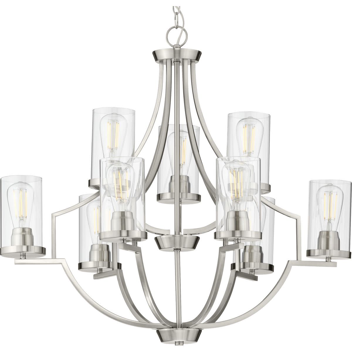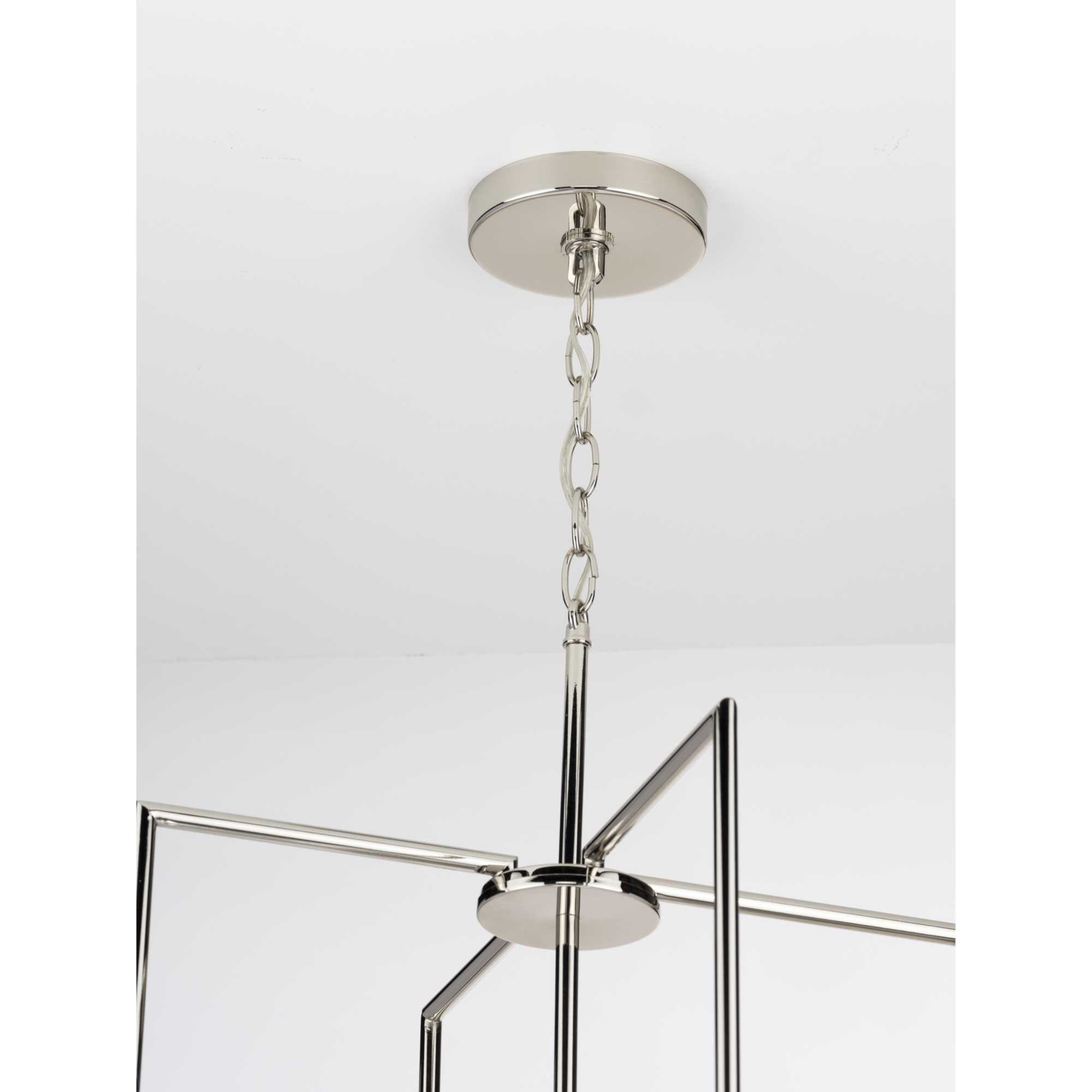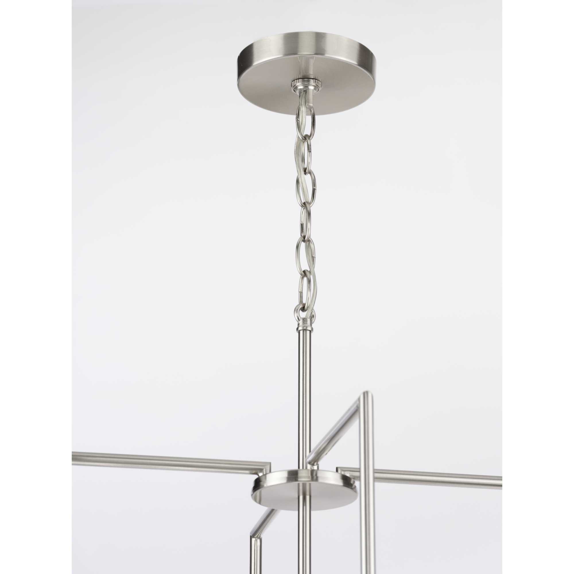 Item DescriptionSmooth forms, linear details and a pleasingly elegant frame enhance a simplified modern look in the Replay chandelier. A rectangular silhouette extending below the etched glass shade makes a strong and simple vertical statement.