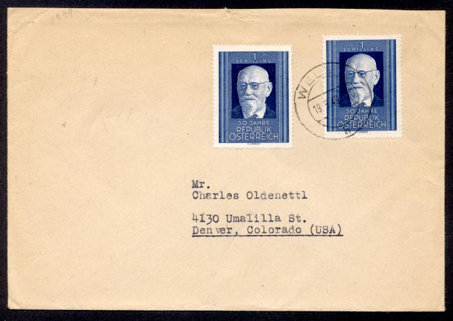 AUSTRIA #557(2) 1949 TO USA