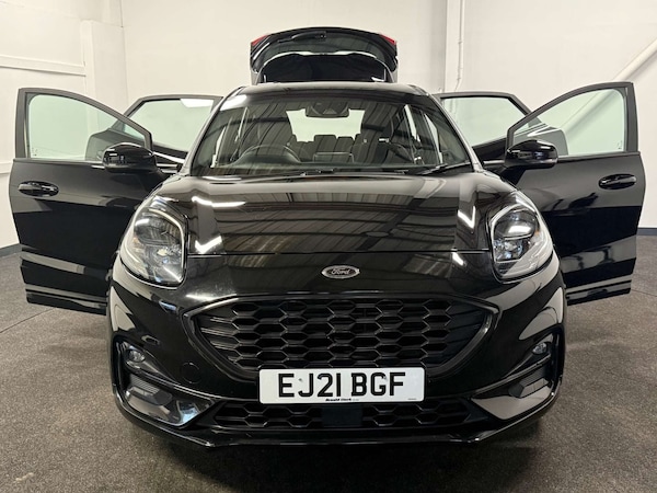 Ford Puma 1.0T EcoBoost MHEV ST-Line SUV 5dr Petrol Manual Euro 6 (s/s) (125 ps) EJ21 BGF • 77,000 miles • 2021 (21) • SUV • Manual • Petrol • Black Overview A sporty and efficient Ford Puma ST-Line Mild Hybrid offering sharp looks, excellent fuel economy and a great driving position. The 1.0 EcoBoost MHEV engine delivers strong performance while remaining economical, making it ideal as a first car, family runabout or commuter. Finished in sleek black with ST-Line styling, this Puma represents excellent value for money. FEATURES ? ST-Line Body Styling Kit ? 17in Black Machined Alloy Wheels ? Mild Hybrid Technology ? Apple CarPlay ? Ford SYNC 3 Navigation ? Full Digital 12.3in Instrument Cluster ? Lane Keeping Aid & Lane Assist ? Rear Parking Sensors ? Power-Folding Heated Door Mirrors ? Wireless Phone Charging ? Cruise Control ? Sports Suspension ? Selectable Driving Modes ? Projector Headlamps with LED DRLs ? Automatic Headlights & Rain-Sensing Wipers ? Sports Style Front Seats Every Liberty Green car is hand-selected, HPI clear, and prepared to a high standard for total peace of mind. Each vehicle undergoes a detailed inspection and comes with a minimum three-month warranty, extendable for up to three years. We also offer nationwide delivery, competitive finance, and a straightforward, customer-focused buying experience.