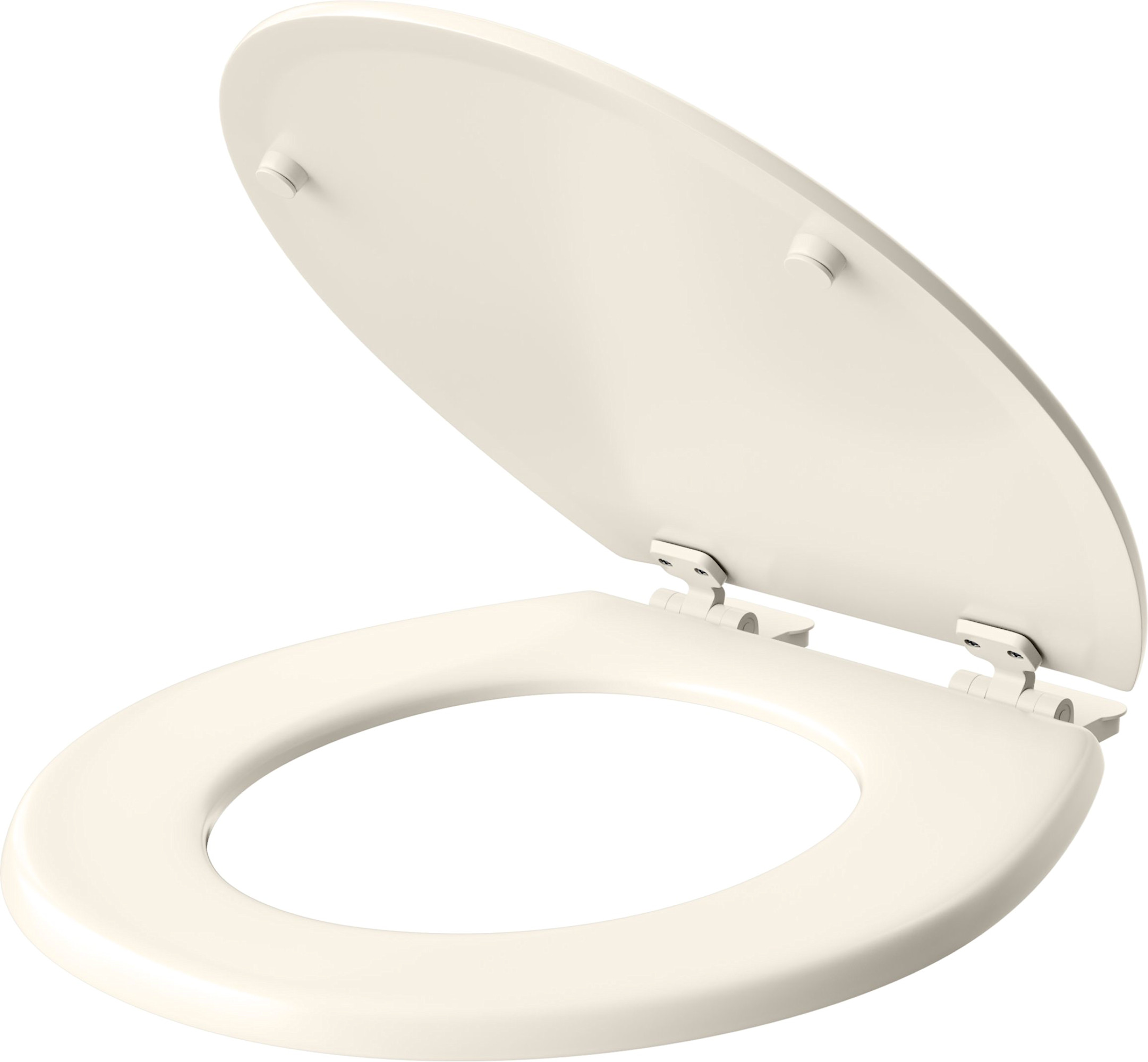 - Round-front toilet seat with lid – designed to complement a wide variety of round-front toilet designs