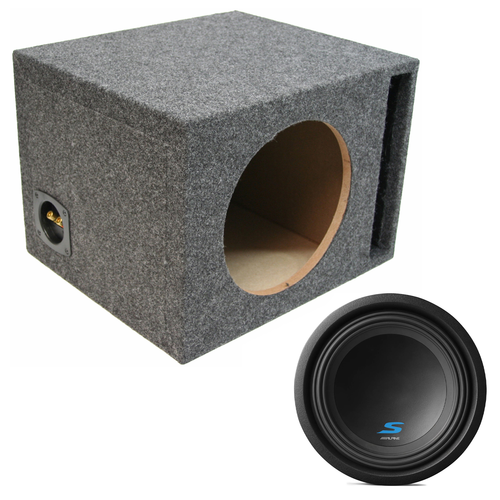 Upgrade your car audio system with the American Sound Connection Alpine Fits Universal Ported Single S-W10D4-NBX 10" 600W RMS Subwoofer Loaded Sub Box Enclosure Bundle, designed to deliver deep, powerful bass performance with impressive clarity. This high-output 10-inch subwoofer is built to enhance low-frequency response in cars, trucks, and SUVs. Engineered for universal compatibility, it integrates seamlessly into a wide range of aftermarket audio systems. Ideal for bass enthusiasts seeking reliable power handling and strong, impactful sound.