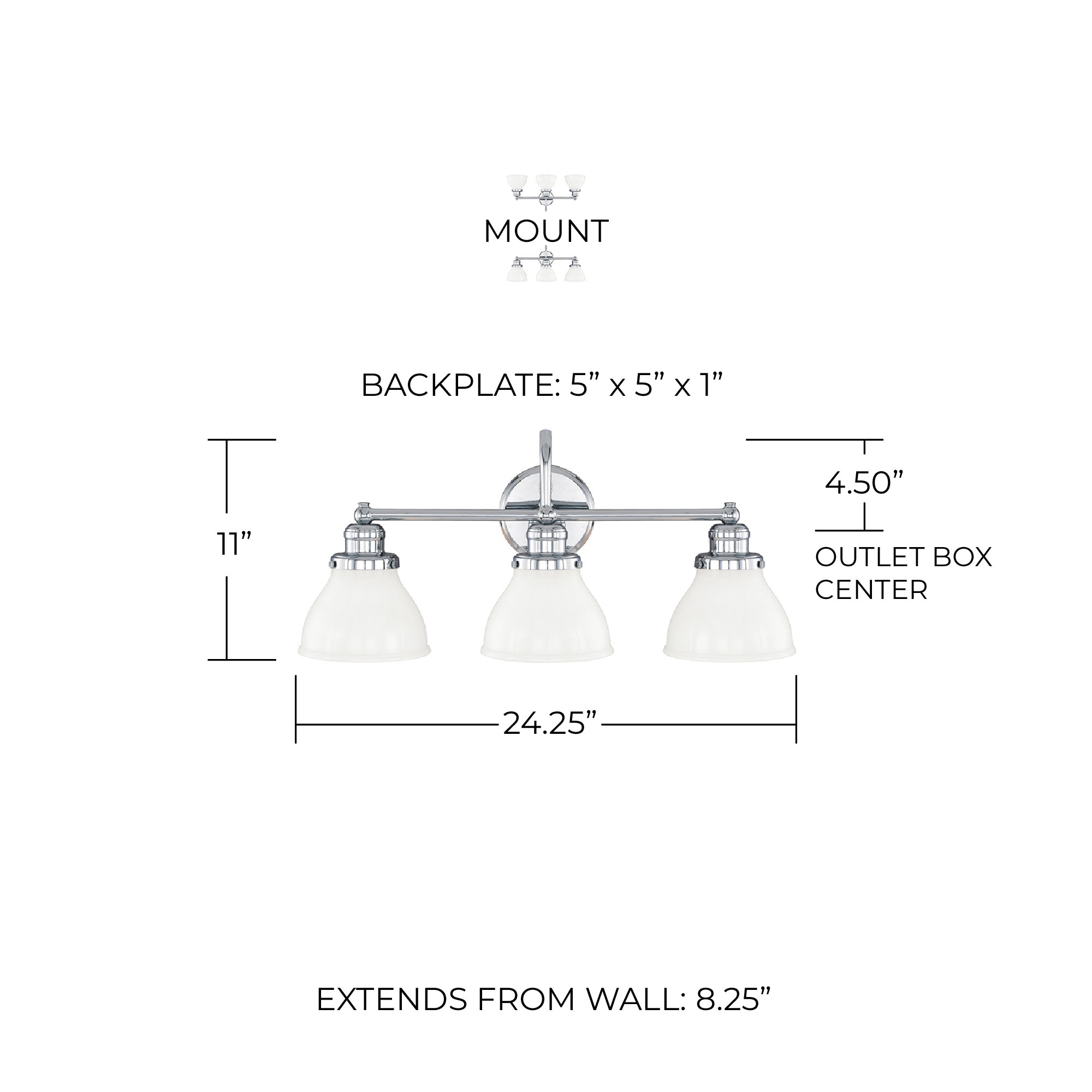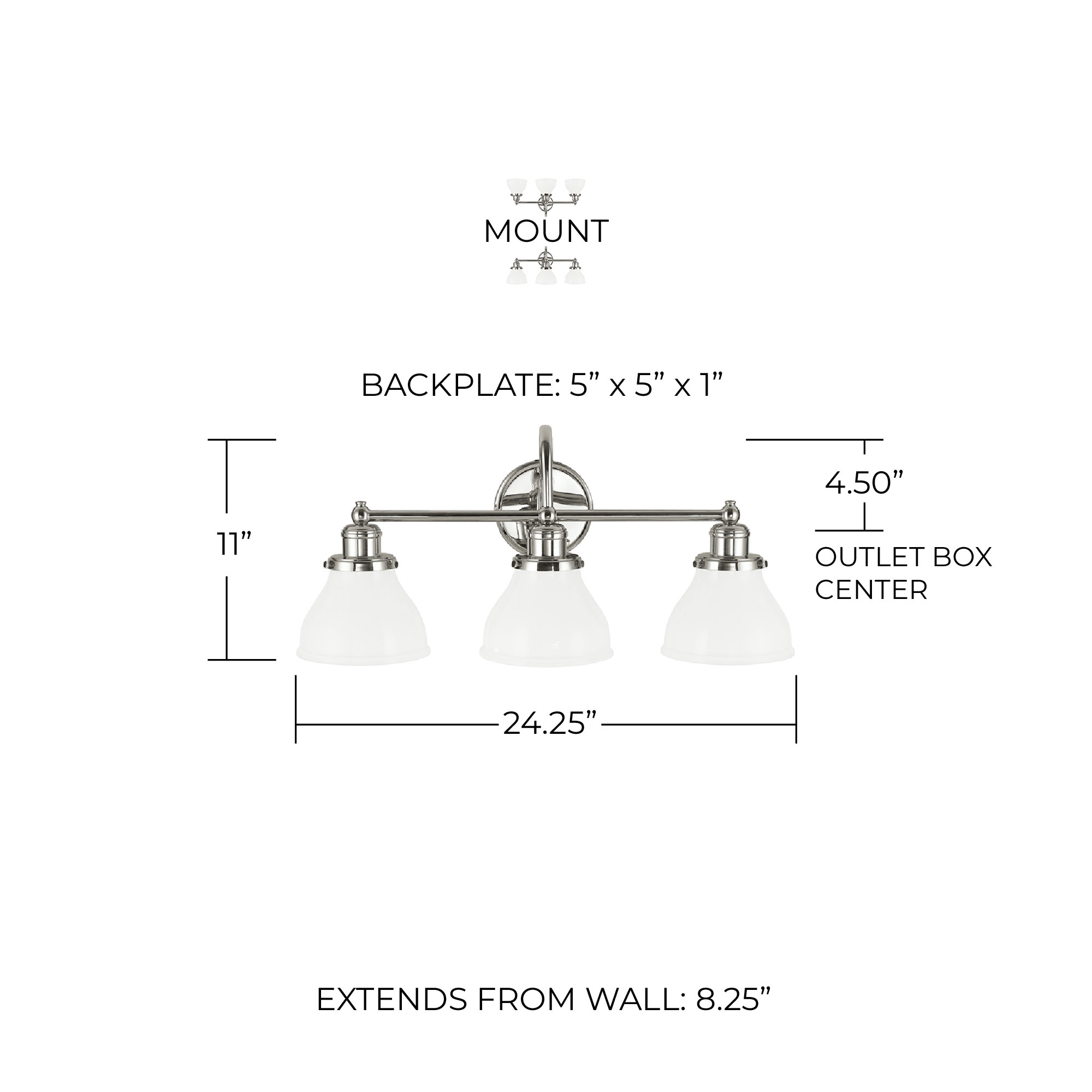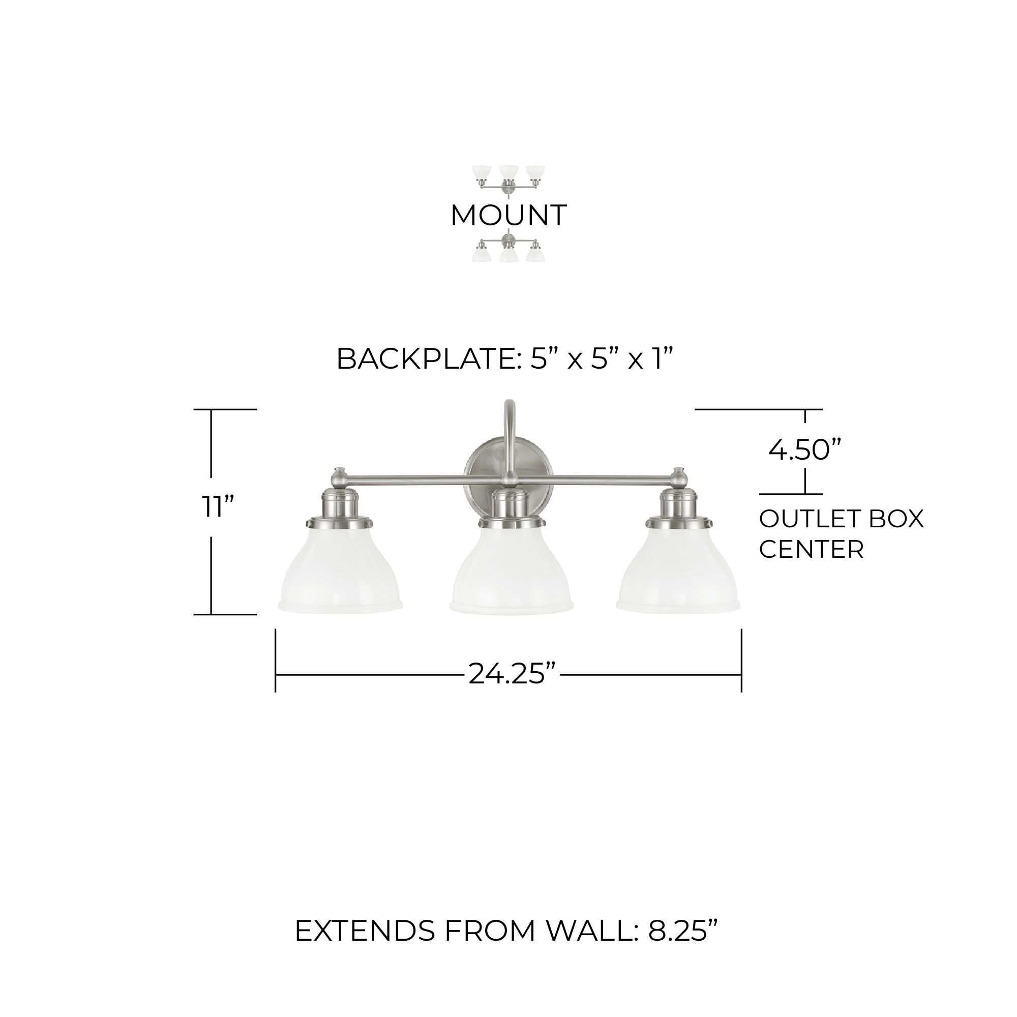 Item DescriptionThe Baxter 3-light vanity brings tasteful illumination to your bath. Its clean profile is marked by a centrally positioned, u-shaped arm and a straight rod, conveying industrial inspiration.