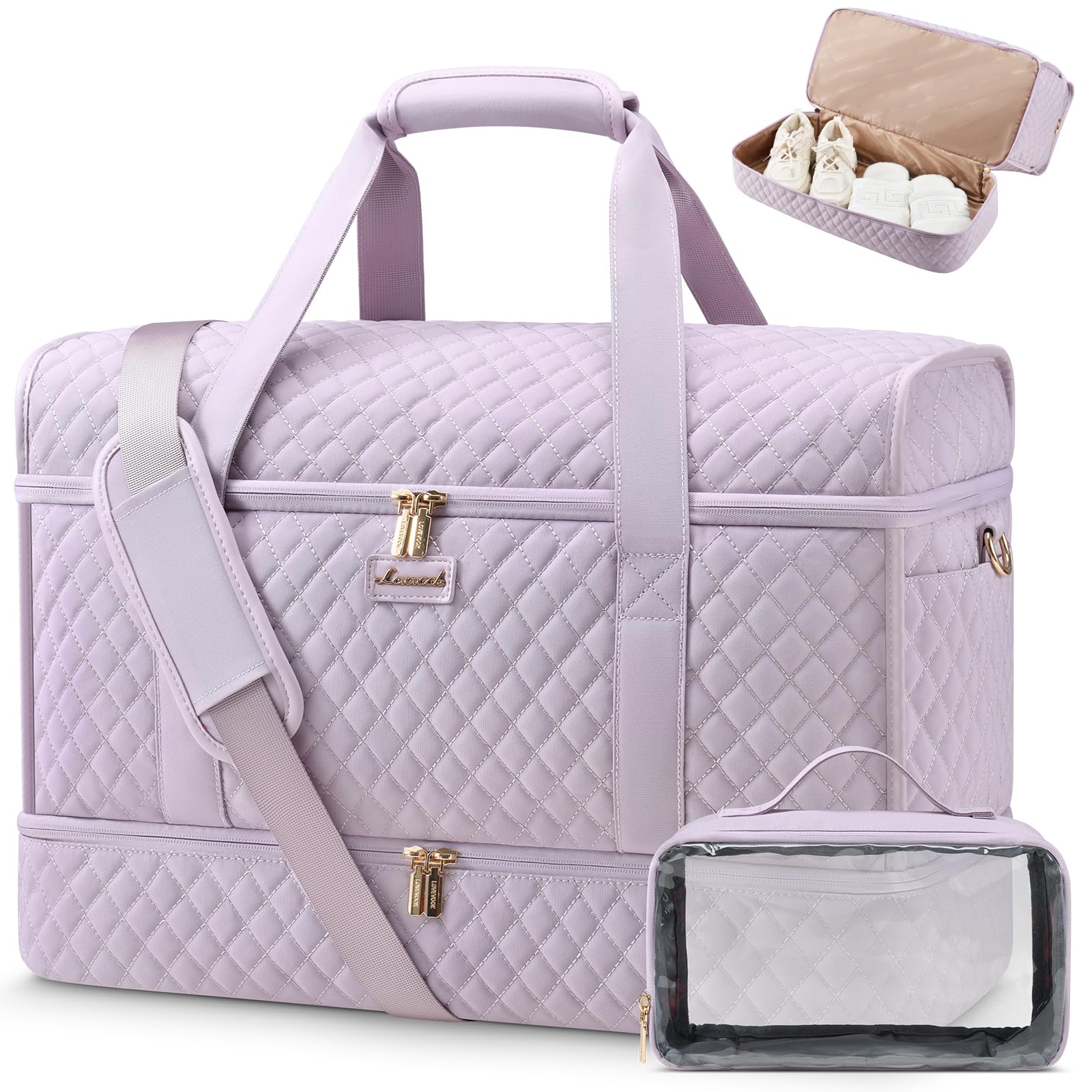 Spacious Shoe Compartment: Features a dedicated compartment for two pairs of shoes, keeping them separate and organized within your travel bags for women.