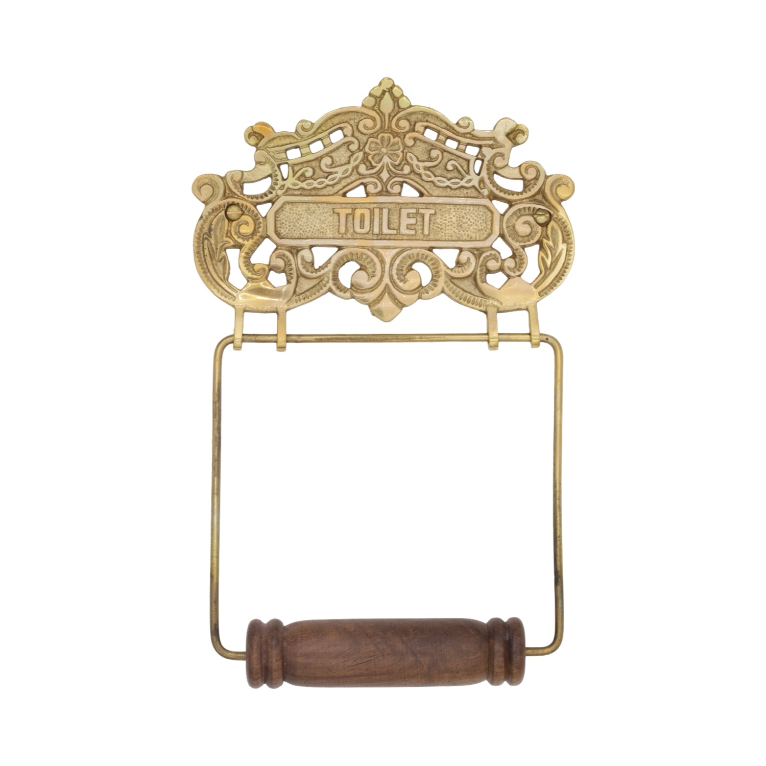 This Victorian Era Replica, French style toilet paper holder features a lovely, ornate brass casting complimented by a polished finish and wooden spool.