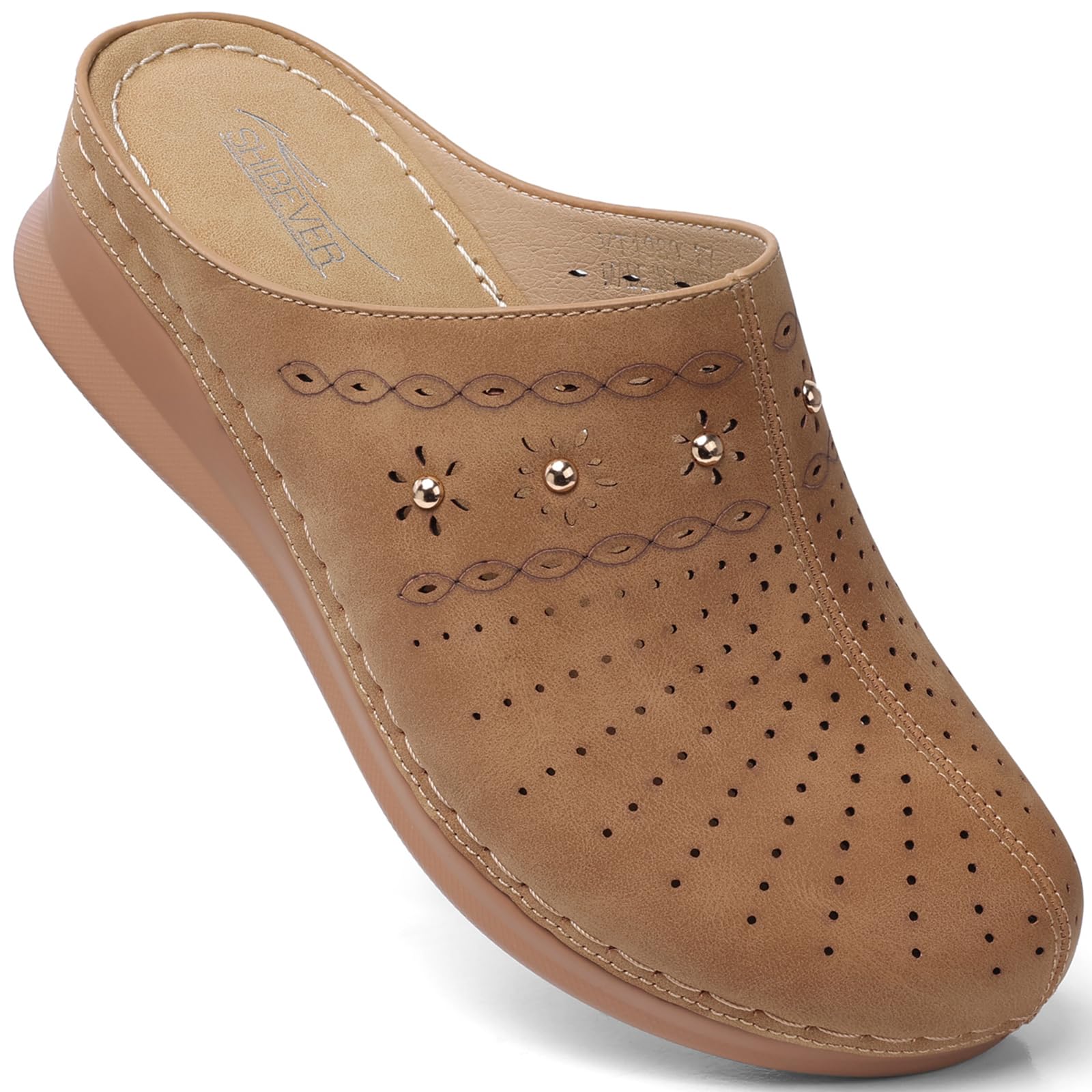 SHIBEVER Brown Closed Toe Mules for Women, Size 7 Clogs - Summer Dressy Comfortable Women's Mule