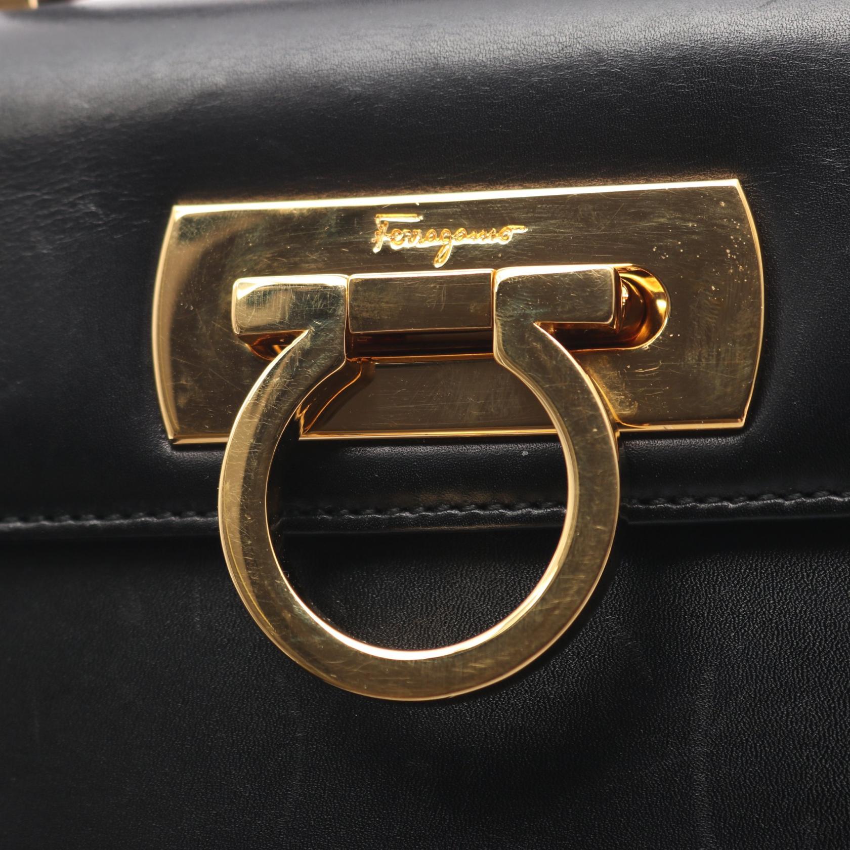 | Item Name | Salvatore Ferragamo Gancini 2Way Crossbody Shoulder Handbag leather Black Used |