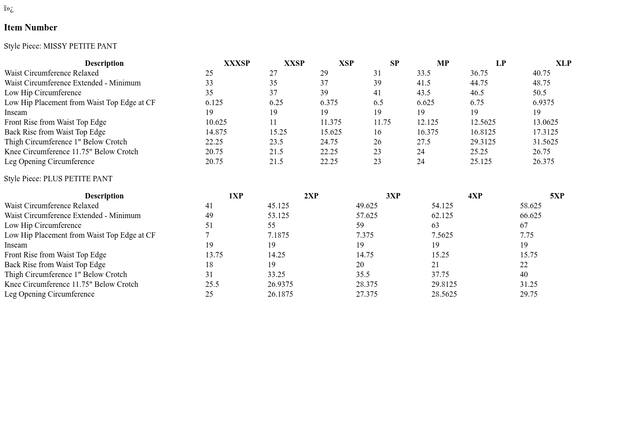 - Inseam: petite missy/plus inseam 19"