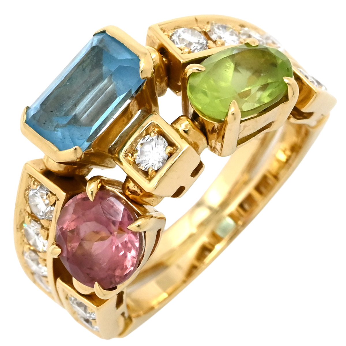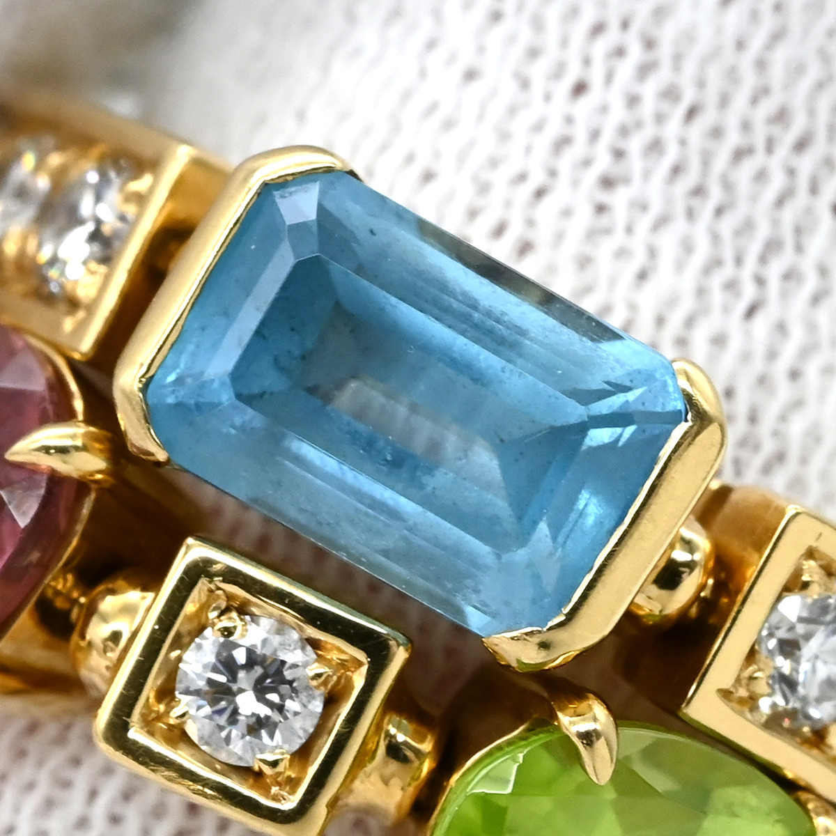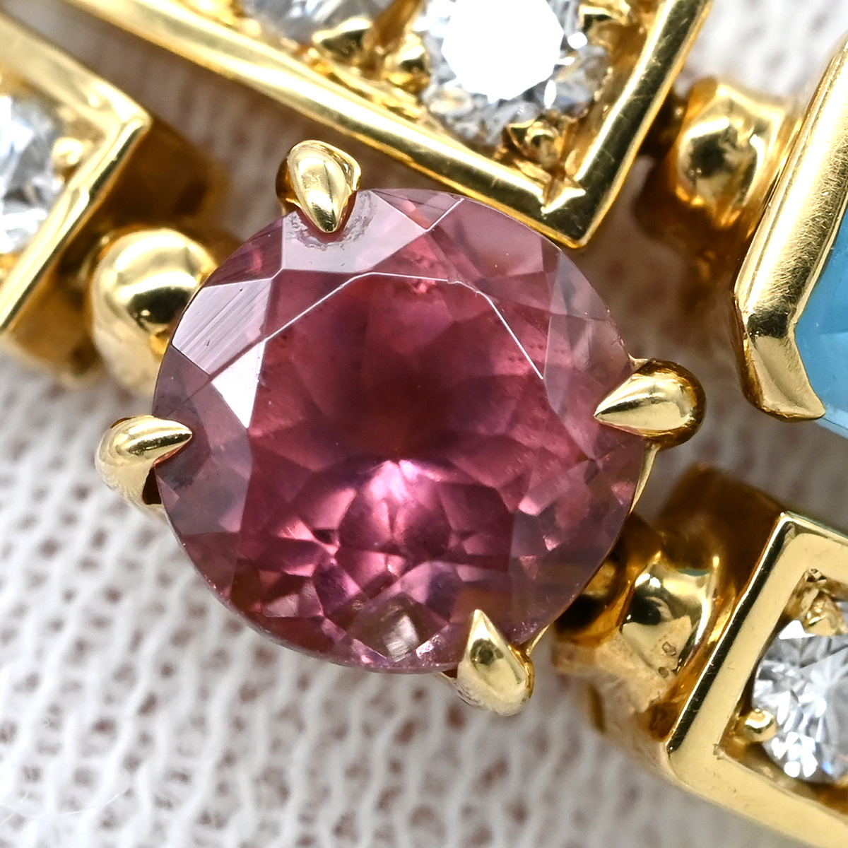 | Material | 18K Yellow Gold/Blue Topaz/Pink tourmaline |
