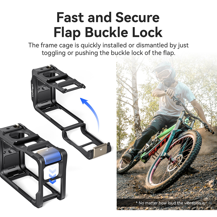 l The frame cage is quickly installed or dismantled by just toggling or pushing the buckle lock of the flap